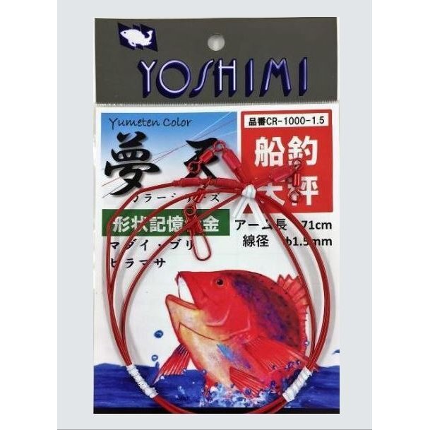 ・形状記憶合金製船釣り用L型天秤 赤色 ・線径:1.5mm 全長:1000mm アーム長:71mm ・対象魚:大ダイ、ブリ、ヒラマサ など 従来の「夢の天秤シュリンプカラー」をリニューアル。 スイベルの塗装を見直し、従来と比べ回転性能が向上し仕掛けがヨレにくくなりました。 赤色の天秤は群れの中に落としても魚が散りにくいと言われています。 魚の警戒心を和らげるカラーで釣果UPが期待できます。 (★複数在庫あります) |