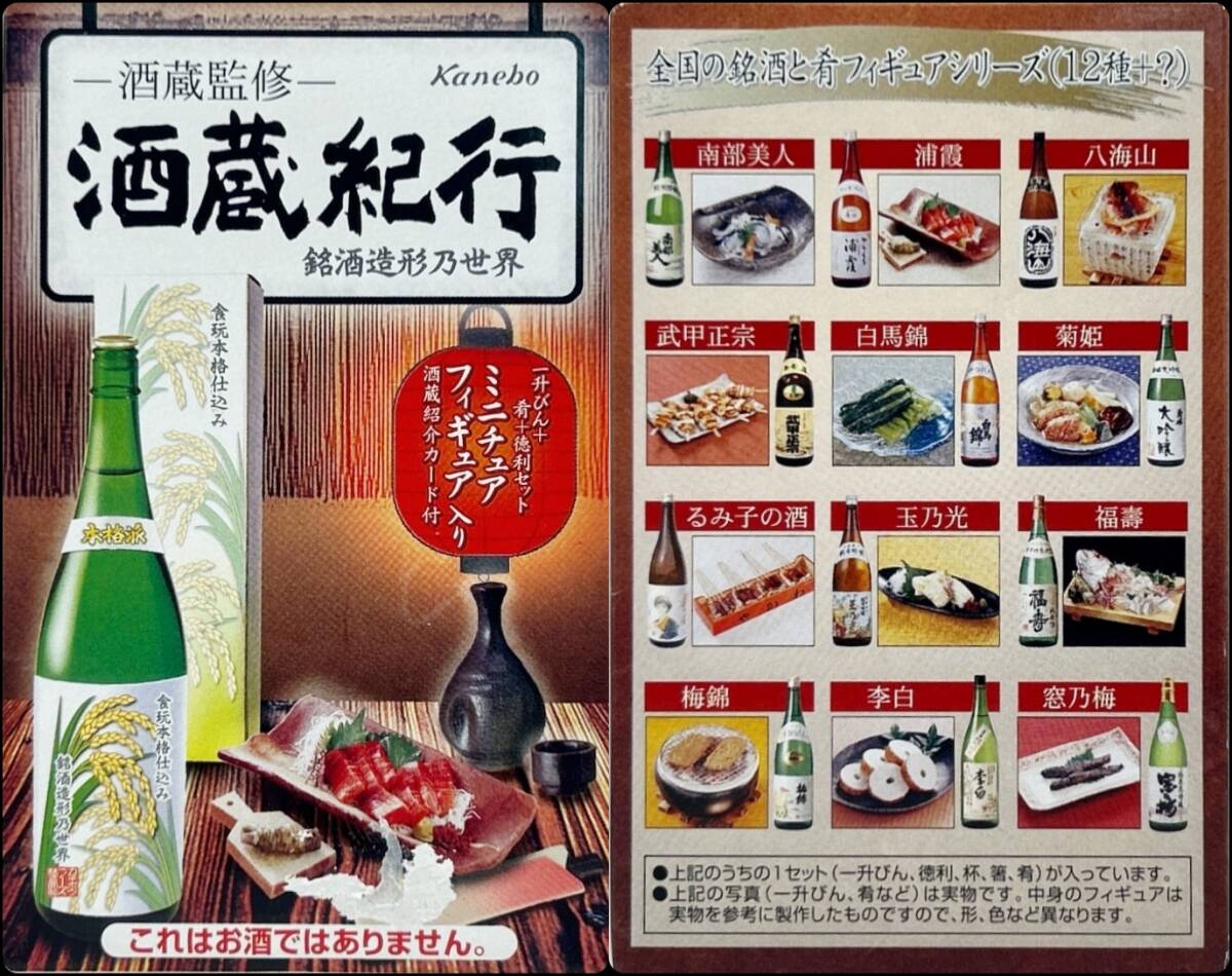 ご覧いただきありがとうございます。 カネボウ 酒蔵紀行 銘酒造形乃世界 二杯目 銘酒造形乃世界 (ぷちサンプル ドールハウス ミニチュア系 フィギュア)の出品です! 日本全国から選りすぐった地酒の一升瓶と、各酒蔵が勧めるご当地ならではの肴や徳利セットのフィギュアがすべて5分の1で再現されています。 画像の外箱はイメージになります。商品には付属しませんのでご注意ください。 現在絶版にて入手困難な商品です。 《ラインナップ》 01 「南部美人」(岩手県)+南部サケの氷頭なます ★フィギュア・おもちゃ・食玩等 他にも多数出品しております。是非ご覧ください!! | ||||