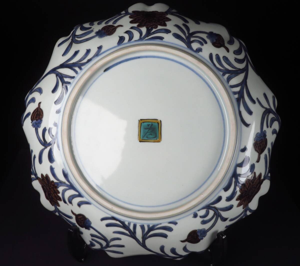 | 【SAKURAYA】コレクター整理品【色絵山水人物文飾皿/九谷焼 三ツ井為吉(詠一)】古九谷 作家 在銘 共箱 輪花 骨董品 古美術品 直径30.5cm | ||