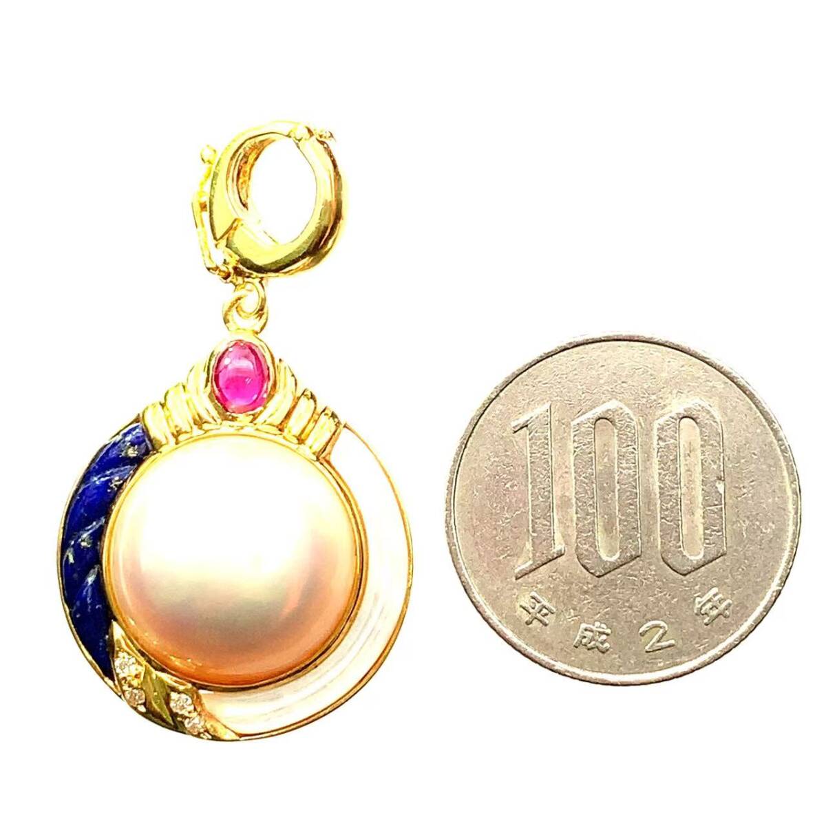 | 素材 | ■K18 ■宝石:マベパール14.9mm・ダイヤモンド0.04・ルビー |