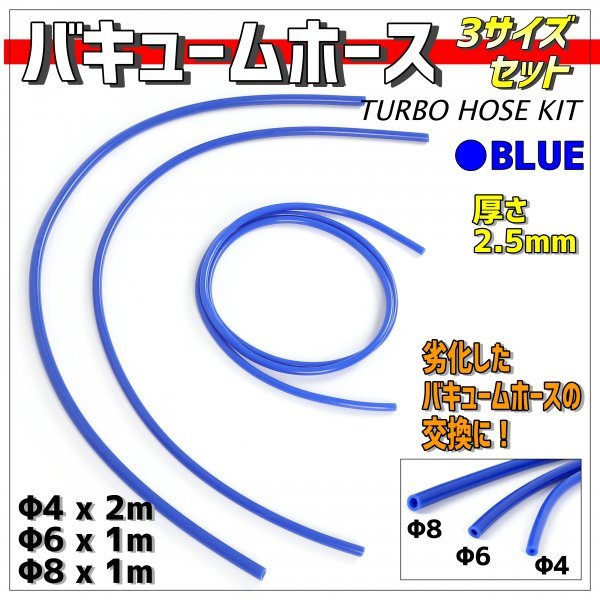 | 新品 セット内容【Φ4×2m、Φ6×1m、Φ8×1m】 XQ13ブルー 白化や硬化しない柔軟性の高い100%シリコンを使用した汎用シリコンホースです。 Φ4×2m、Φ6×1m、Φ8×1mの3サイズをセットにしました。 劣化したバキュームホースの交換にお使いいただけます。 耐熱・耐圧・耐震で、変色せず高い耐久性を誇ります。 柔軟性があり、狭い場所の接続も可能です。 エンジンルーム内のドレスアップにもオススメです。 ブーストコントローラーバルブユニット配管等、 バキュームホースとして使用可能です。 高品質でプロショップでも使用、曲げに強く繰返し使用しても変形しずらく、フィット感にも優れた使い易さ抜群の一品です。 埃やゴミが付着した場合は、水洗いか水拭きして頂くと綺麗になります。 ジムニー専用品では御座いませんので取付説明書等ご用意出来ません。 汎用品とご理解頂き臨機応変にご使用下さい。 | |||