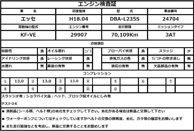 部品状態:エキマニ欠品、スラッジ少し、ヘッド&ブロックオイル滲み、CP-13.0×3、テストOK