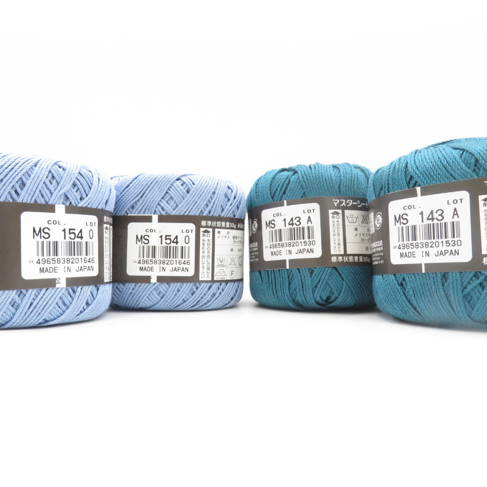 | ダイヤモンド毛糸 毛糸 マスターシードコットン 154番色×2玉 143番色×2玉 1玉30g巻 約106m 春夏毛糸 合太 水色 緑色 未使用品 |