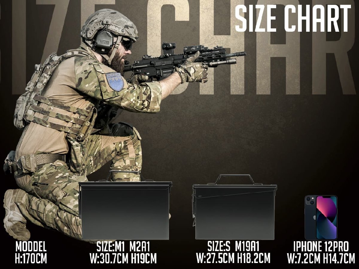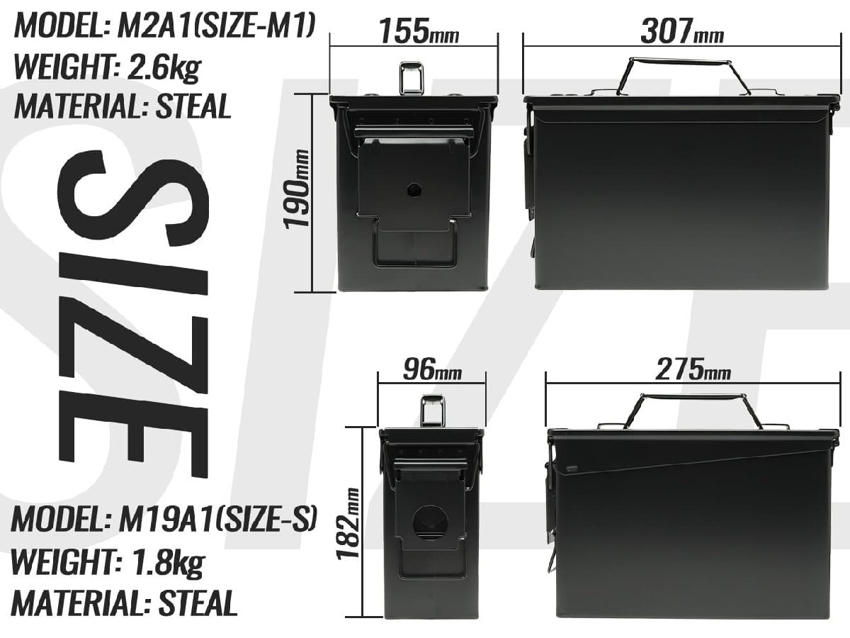 商品説明 ITEM INFO 弾薬ケースをリアルに再現!バッテリーや工具・アウトドア用品の収納に!密閉性が高いので炭入れにもオススメ! MILITARY-BASE(ミリタリーベース)M19A1タイプ /M2A1タイプ アンモボックス 2個セットです。 米軍でM60マシンガンなどの7.62mmベルトカートリッジを運搬・保管するのに用いられたボックス「M19A1」と、米軍でM2ブローニングなどのCal.50ベルトカートリッジを運搬・保管するのに用いられたボックス「M2A1」をリアルに再現しています! 蓋にはパッキンが内蔵されているのである程度の密閉性があります。防滴&防塵ケースとしてや乾燥剤を同梱しての防湿ケースとしてもオススメです。スコープやドットサイト、モデルガンの火薬等などのミリタリーアイテムから、キャンプ道具や木炭などのアウトドアグッズの保管・運搬にピッタリ。 また防火性も高いのでリチウムバッテリーの保管にも使用できます。 ミリタリーな雰囲気が全開なので、お部屋や店舗、ガレージ、トランポなどのインテリアグッズとしてもどうぞ! 商品基本情報・スペック ITEM SPEC ●商品名 : MILITARY-BASE(ミリタリーベース)M19A1タイプ /M2A1タイプ アンモボックス 2個セット ●商品番号 : H8012BSET01 ●カラー : BK(ブラック) ●素材 : スチール ●サイズ : 275mm×96mm×182mm(M19A1 SIZE-S)、 307mm×155mm×190mm(M2A1 SIZE-M1) ●重さ : 1.8kg(M19A1 SIZE-S)、 2.6kg(M2A1 SIZE-M1) ●オススメの用途 : エアガンのBB弾やマガジンの保管アーモボックス、耐火容器としてリチウムバッテリーの保管・運搬箱、DIY用品や自転車・バイク・車の工具を収納するツールボックス、密閉性を活かした炭入れやカメラのレンズ保管箱、インダストリアルなインテリアアイテム、オートバイのパニアケースなどなど 注意事項 ITEM NOTE ∇商品固有の注意事項 ※表面に多少の小傷や小さな凹み、塗装ムラがある場合ございます。 ∇ご購入時の留意事項 ※商品はすべて点検してからのお届けになります。商品によってはパッケージの開封等を行う場合もございますことをご了承ください。 ※商品には万全を記しておりますが、万一不備な点がございましたら、お手数ですがお問い合わせフォームにてご連絡頂ますようお願い致します。なお、海外製品につきましては、輸入時についた若干の傷、痛み等が見られる場合がございます。 国内製品のような完全品をお求めの方はご遠慮下さい。 ※商品が適合外であった場合、またはお客様都合による交換・返品・返金は出来ません。よくお確かめの上、ご購入下さい。 ※モニター環境により、実際の商品の色と若干異なる場合がございますのでご了承下さい。 ※他サイトでも同時販売の為売り切れの際はご了承下さい。 ※売り切れの際は早急にご連絡させて頂きます。(当社休業日を除く) 関連商品 RELATED ITEM |