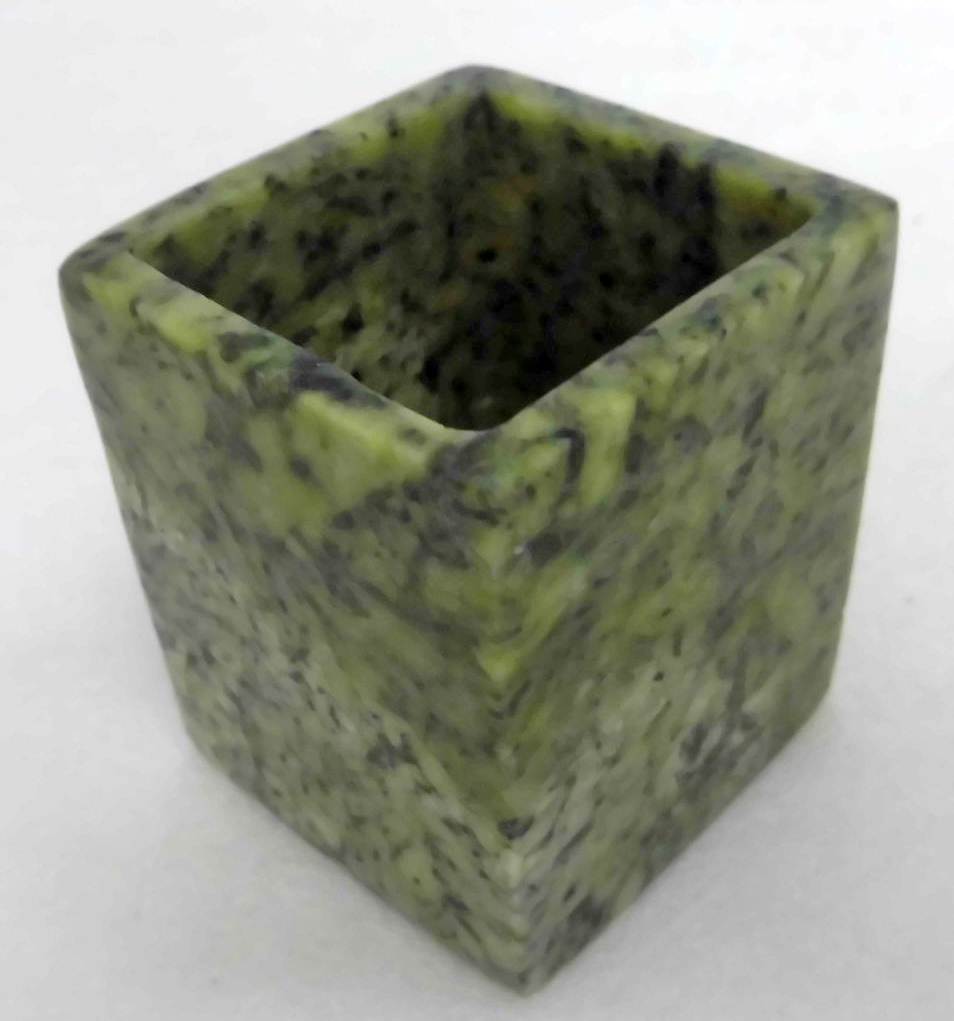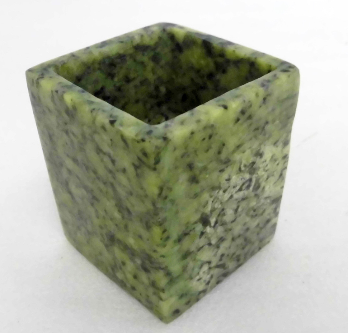 | 品名:碧玉 角巾筒 花入 茶道具・煎茶道具 作家:林 白祥 寸法:≒4.9㎝角 丈≒5.8㎝ ≒155g 状態:一個の結晶体から刳り貫いた逸品です。無疵、極美品です。 できるだけ説明いたしますが、写真でご判断ください。写真の色の誤差はご容赦ください 出品者の主観です:食卓テーブルのお供にもお楽しみください。 | ||