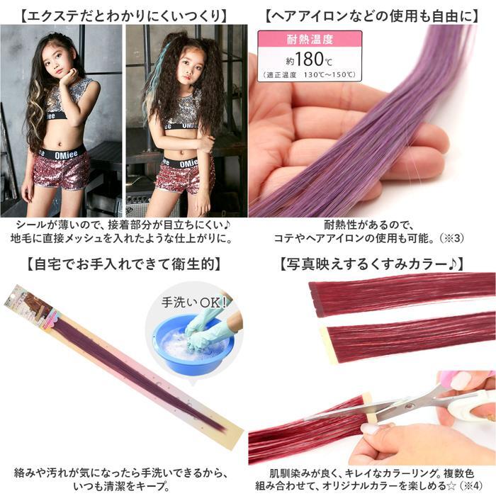 | 商品説明 | ・・【自宅で簡単!セルフカラーメッシュ】 ・染める必要なし!外国人風のカラーメッシュをプラス。「プリシラ めちゃ楽シールエクステ」。 ・【地毛にもウィッグにも貼り付けOK】 ・ブロッキングして毛束を取り、シールで直接貼り合わせるだけ!持続期間は約1週間程度。 ・(※1)持続期間は個人差がございます。 ・【外す時もお店に行く必要なし◎】 ・エタノールや除光液を使って、剥がせる仕様。自分の好きな時に、セルフで外せるのもポイント。 ・(※2)無理に取り外すことはせず、心配な方は美容院での取り外しをおすすめします。 ・【地毛のような自然な質感とカラー】 ・耐熱ファイバー100%素材。ツヤを軽減し、地毛との境目が気になりにくい! ・【エクステだとわかりにくいつくり】 ・シールが薄いので、接着部分が目立ちにくい♪地毛に直接メッシュを入れたような仕上がりに。 ・【ヘアアイロンなどの使用も自由に】 ・耐熱性があるので、コテやヘアアイロンの使用も可能。 ・(※3)耐熱温度は180度、適正温度は130~150度です。 ・【自宅でお手入れできて衛生的】 ・絡みや汚れが気になったら手洗いできるから、いつも清潔をキープ。 ・【写真映えするくすみカラー♪】 ・肌馴染みが良く、キレイなカラーリング。複数色組み合わせて、オリジナルカラーを楽しめる☆ ・(※4)2本分×2シート入りです。シール部分を真ん中でカットしてから、ご使用ください。 |
