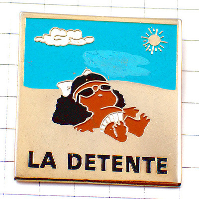 | "ピンバッジ・休憩ビーチで日焼け黒いサングラス太陽と白い雲"の商品説明 | |
