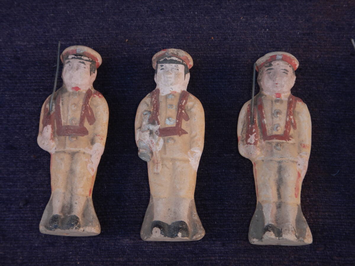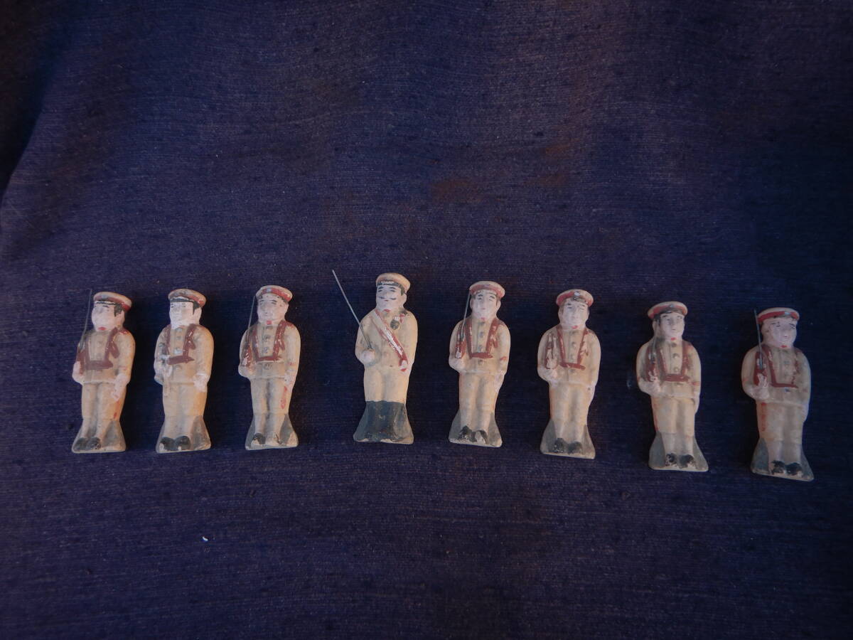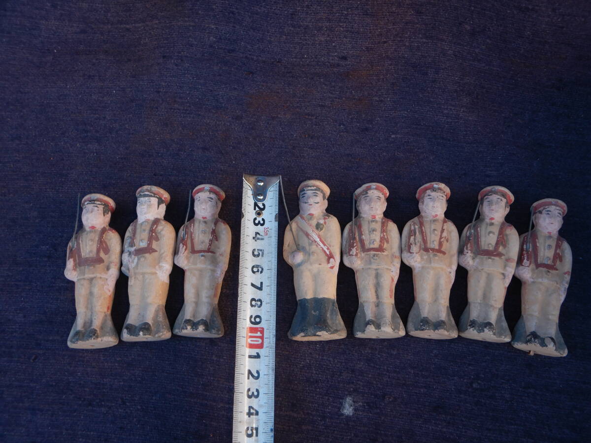 | 戦前 戦時中 旧日本軍 日本陸軍 日本軍 陸軍 土人形 小隊 指揮官 喇叭手 歩兵 兵隊 兵士8体 玩具 当時物 | |