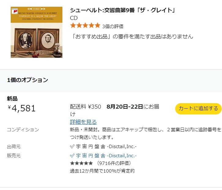 シューベルト:交響曲第9番「ザ・グレイト」| 出价者 | 信用 | 价格 | 时间 |