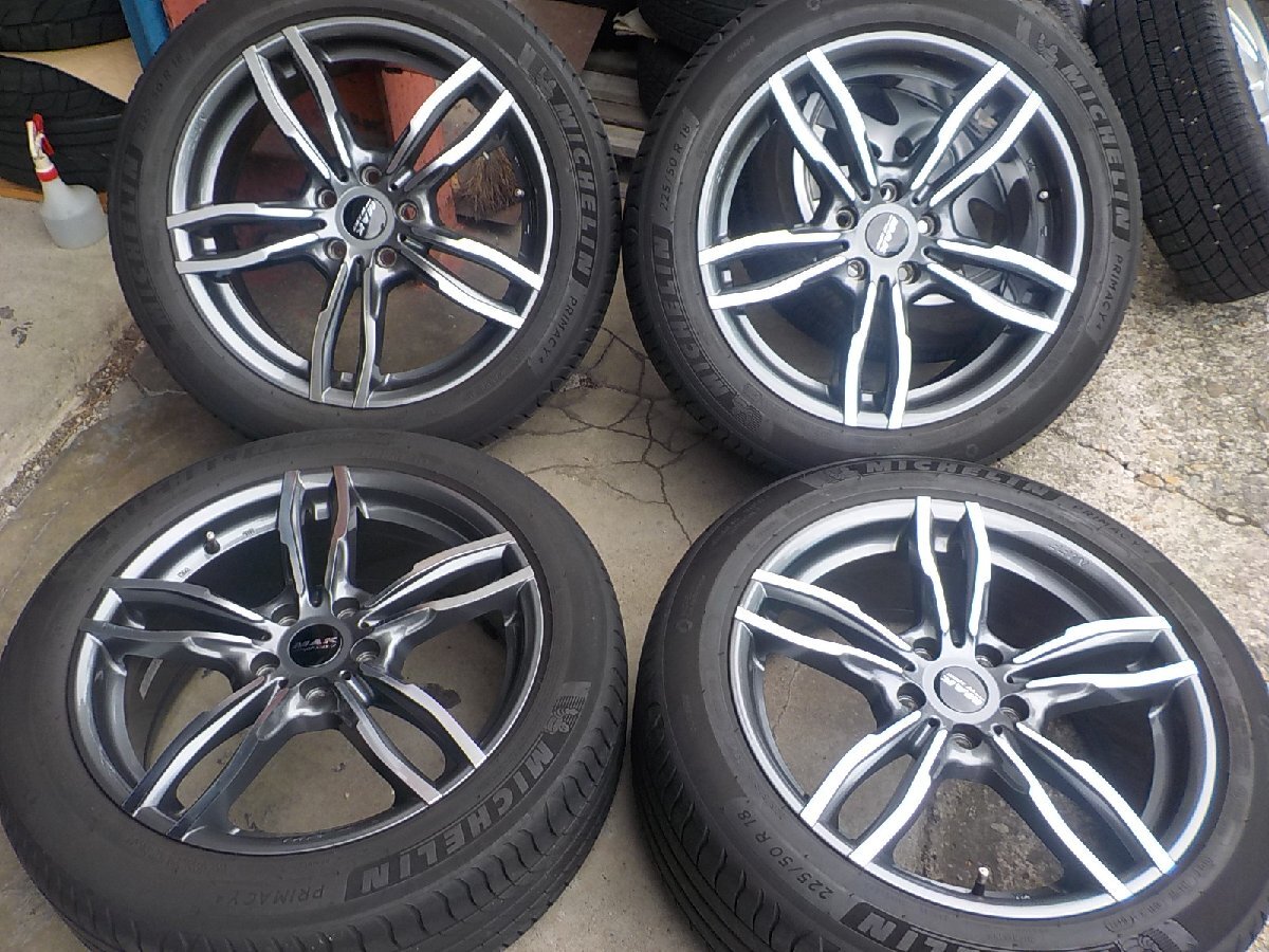 | ■業者宛送料安 BMW X1 ミニクロスオーバーMAK18インチ4本セット 8J+57 112/5 225/50-18 2020年製■京都発 ★BMW X1(F48) X2(F39) ミニクロスオーバー(F60) など ★ BMW X1(F48) X2(F39) ミニクロスオーバー(F60) MAK LUFT18インチアルミタイヤ4本セット 8J-18 インセット57 PCD112 5穴 ハブ径66.6φ 225/50-18 ミシュラン プライマシー4 2020年製 5.5ミリ山 リムの目立ったガリ傷はありませんがポリッシュ部に腐食少しあります ガンメタ/ポリッシュ25081108 ※ 送料は180サイズ4個口金額となります 業者宛ての送料を選択されて送り先住所が個人宅の場合は 西濃運輸営業所止めとなります 別途追加送料で個人宅発送も可能ですのであらかじめご連絡ください 個人宅発送 代引きは不可となります