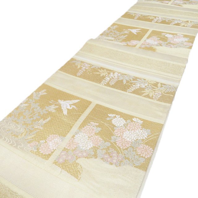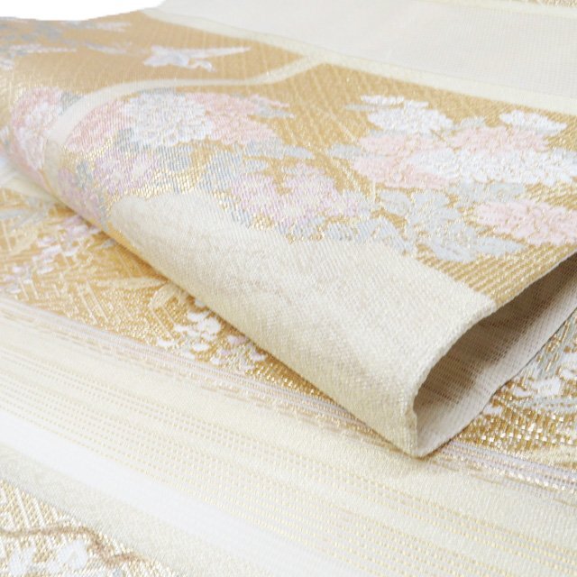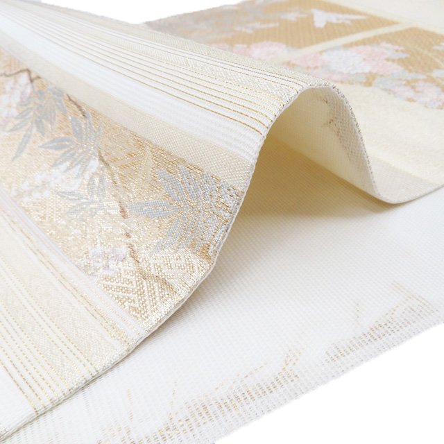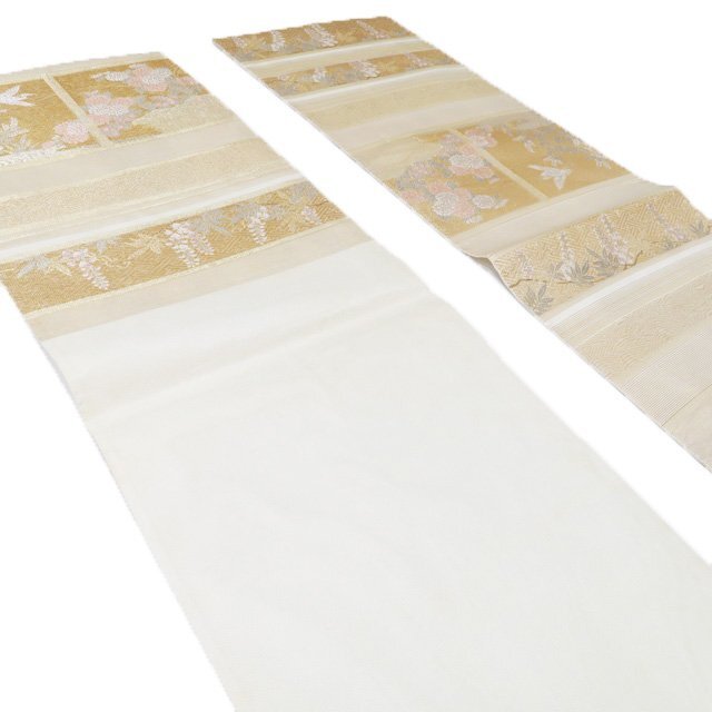 サイズ 437cm x 31cm 素材 正絹 商品ランク D ●お色 多色 金 全体的にアクがございます。帯芯に多々アクがございますが、柄のあるタレ側は目立たない程度でまだまだご着用いただけるお品物です。 涼やかな装いをお楽しみください。 保管臭が残っています。気になる方は購入をお控えください。 一部商品は実店舗・他サイトでも並行して販売しておりますので売り切れの際はご了承ください。 その他多数販売中 ki- | ||||||