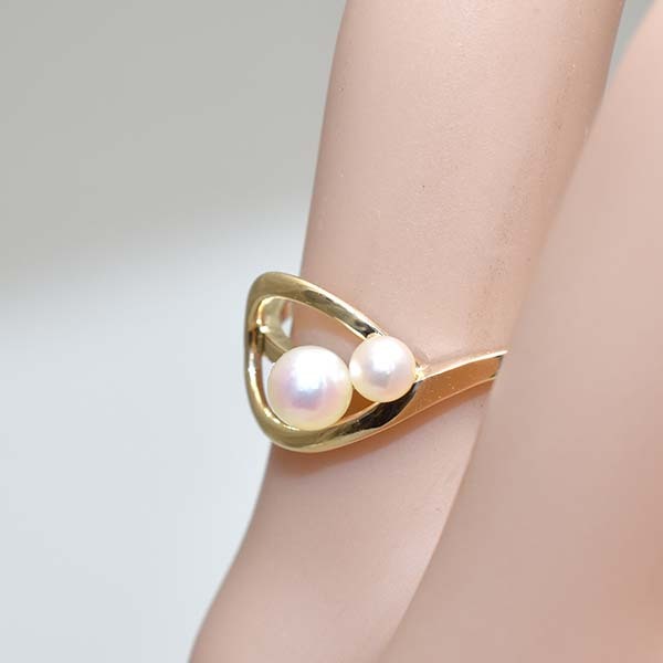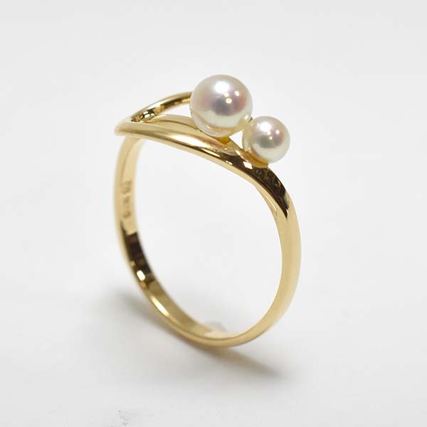 2珠のアコヤパールをセットしたタサキの18金ファッションリング。| 商品詳細 | |||||||||||||||||||||||||||||||||||||