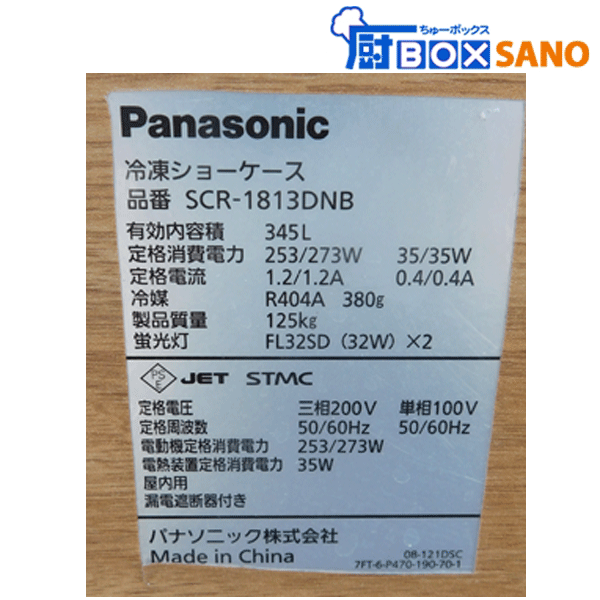 名 称 | パナソニック冷凍ショーケース SCR-1813DNB 2014年製 三相200V 100V 業務用 sano6444 |