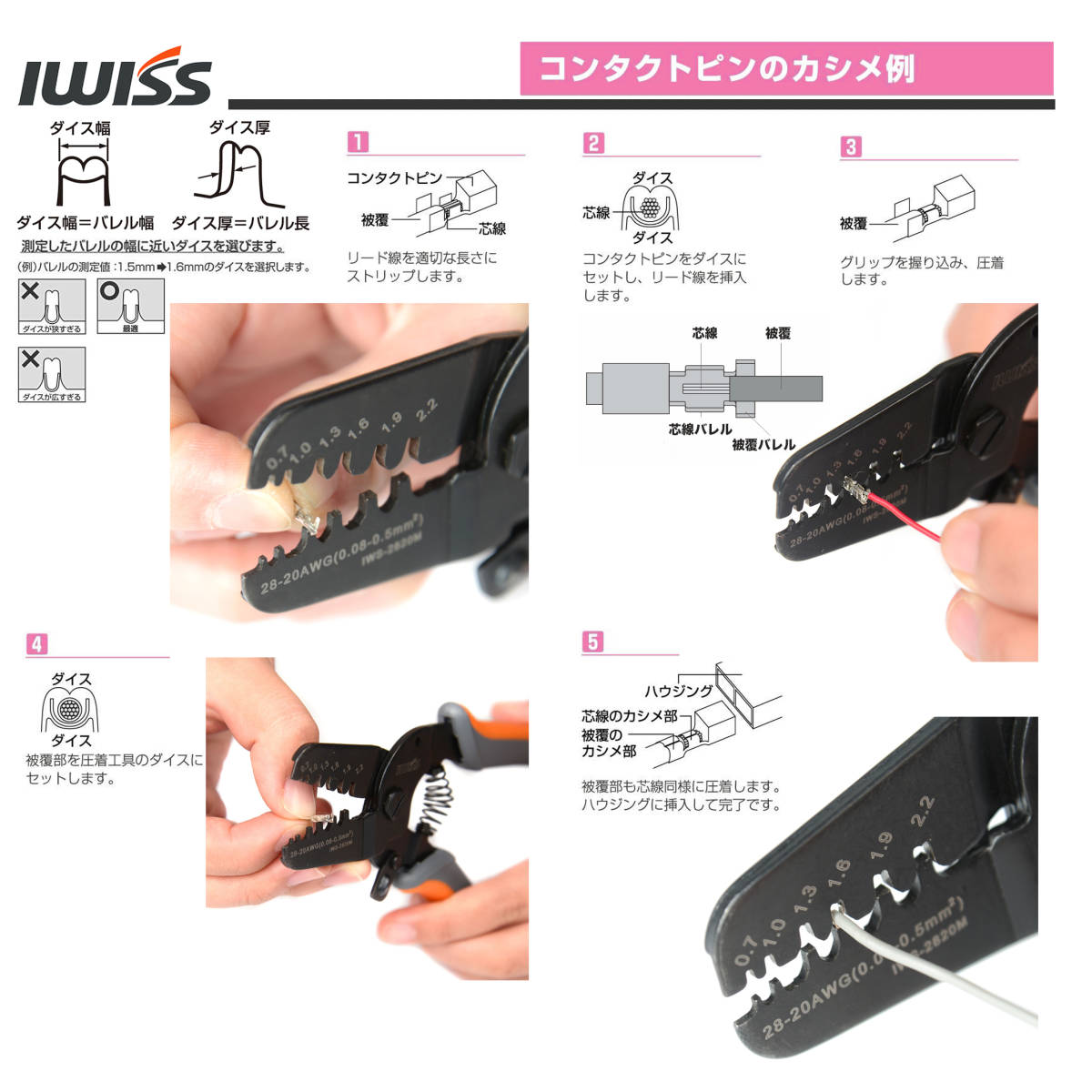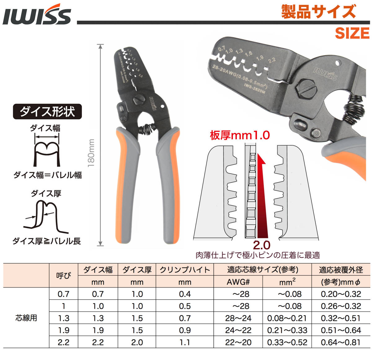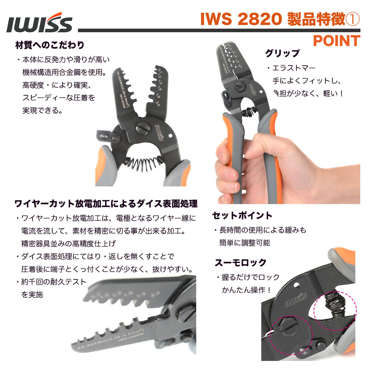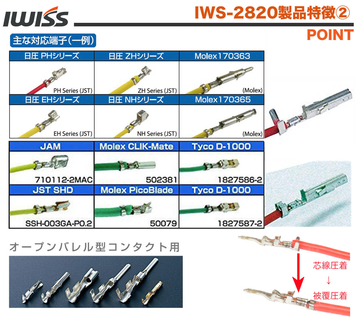 ★アイウィス(IWISS)★精密圧着ペンチ オープンバレル(ギボシ)端子用 0.08-0.5mm2極小端子用 IWS-2820M★ | |||