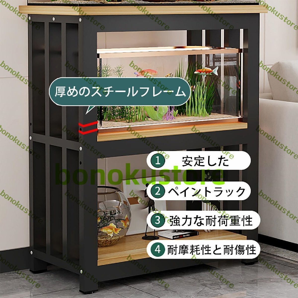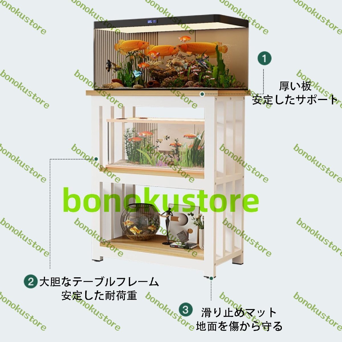 【高さ3段階調整可能な中棚】水槽スタンドの中棚の高さが3段階調節できて、用途に合わせて適当な高さを調整できます。3 層収納で大容量ストレージ:水槽台上層は水族箱設置に最適で、下 2 層は本、グリーン、装飾品、水槽用品などを収納できます。オープンタイプの収納設計で、物が一目でわかり、取り出しも簡単。垂直スペースを有効活用して、狭いスペースでも多くの物を収納できます。?製品名: 水槽ラック /水槽棚 製品材質:プレート+スチールフレーム製品サイズ:40x30x100cm , 50x30x100cm , 50x35x100cm , 50x40x100cm , 55x35x100cm , 60x30x100cm , 60x35x100cm , 60x40x100cm , 60x45x100cm , 65x35x100cm , 65x40x100cm , 65x45x100cm , 70x40x100cm , 70x45x100cm , 80x40x100cm , 80x45x100cm , 90x40x100cm , 90x45x100cm , 100x40x100cm , 100x45x100cm , 100x50x100cm , 120x40x100cm , 120x45x100cm , 120x50x100cm製品の色:ホワイト , ブラック , ブラック 白 , 木の色 黑 , 木の色 白パッケージの詳細水槽設置台×1ご注意ください:1. 手作業による計測のため、多少の誤差が生じる場合があります。実際の商品を参考にしてください。2. 実際の商品の色は画面上の色と多少異なる場合があります。実際の商品を参考にしてください。3. 本製品には水槽スタンドのみが含まれ、水槽やその他の装飾品は含まれません。弊社製品についてご質問がございましたら、お気軽にお問い合わせください。
