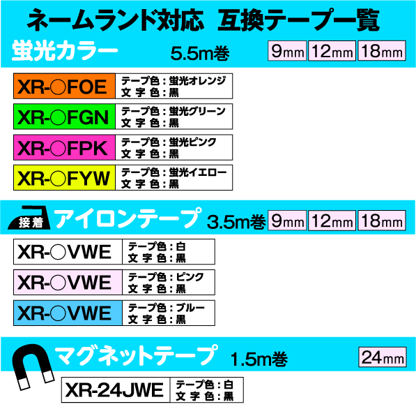 カシオ XR-24X 互換ラベルテープ CASIO(PT-24X) 互換 テープ
