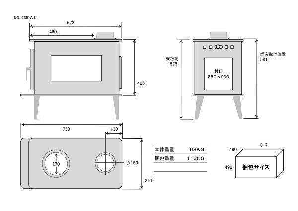 品 名 : 薪ストーブ2351AL型(左開き仕様)