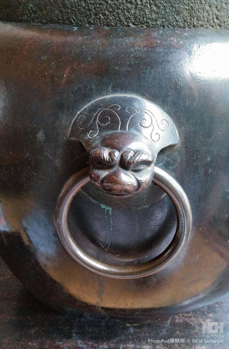 サイズは二号ですが重量感があり持ち手の獅子が迫力があります。