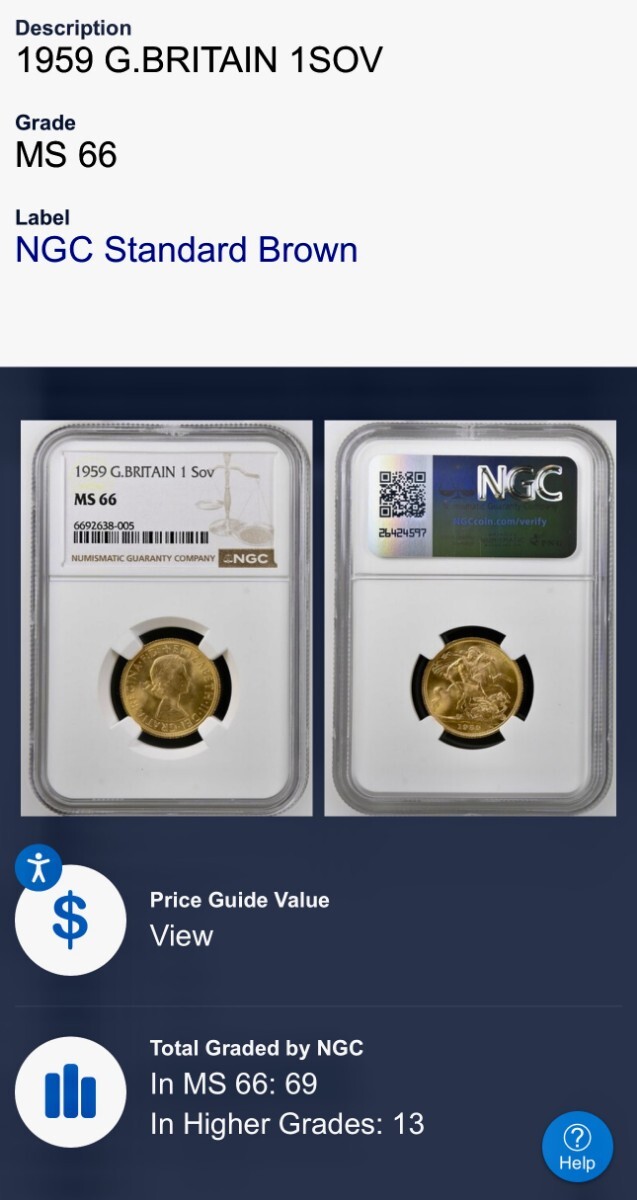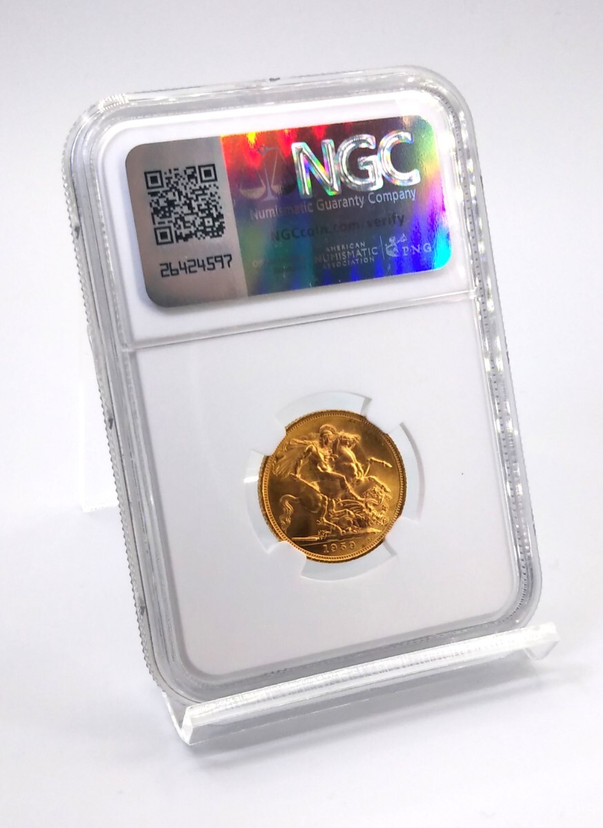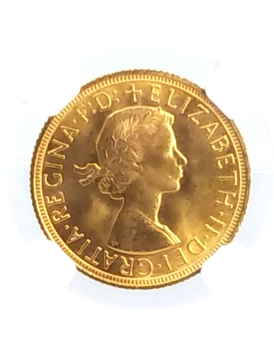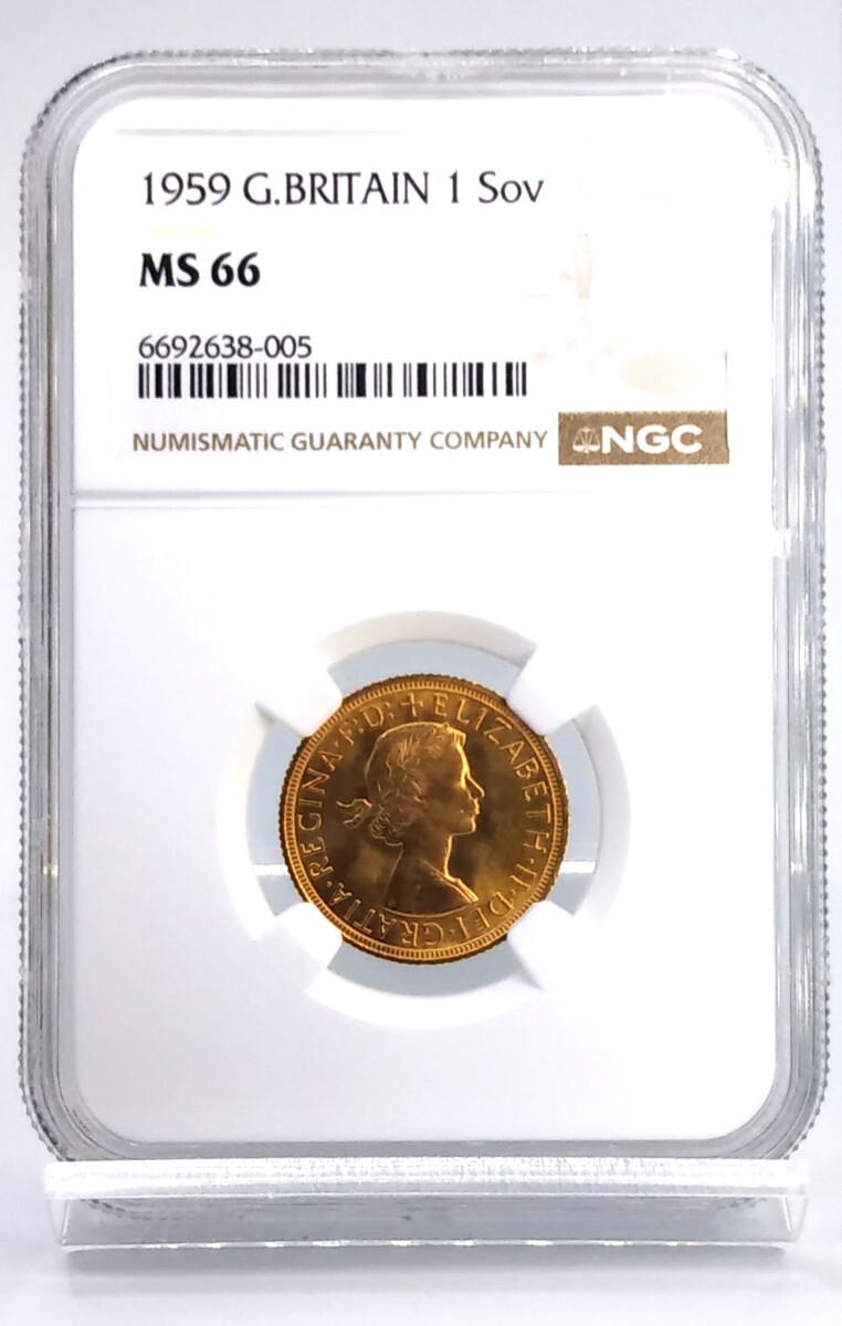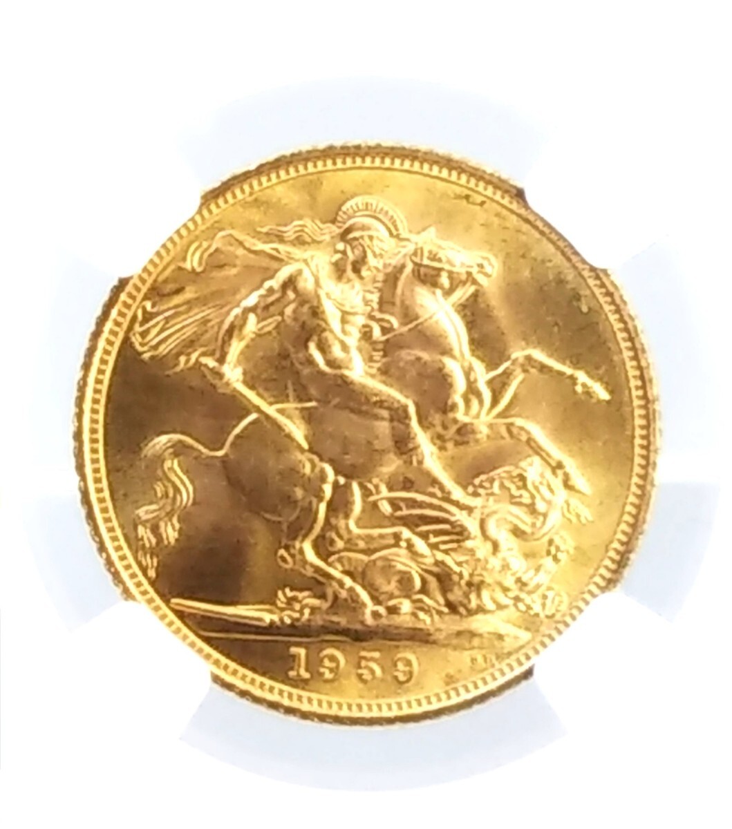 1959年 エリザベス2世 ソブリン金貨 MS66で御座います。特年号で製造枚数が少ない年となっております。いかがでしょうか?(^-^)