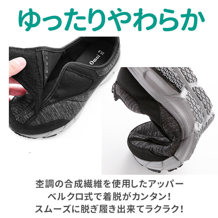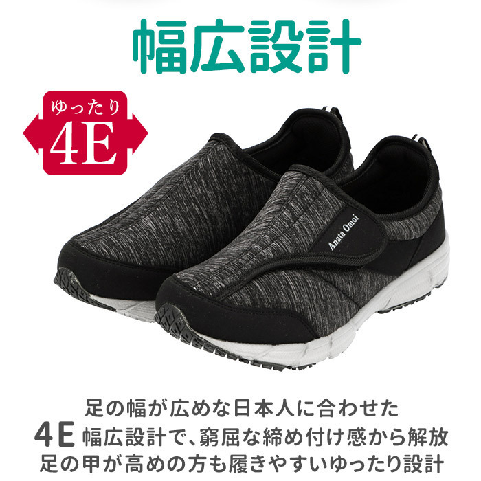 | 商品説明 | ・歩きやすさ&履き心地にこだわったメンズスニーカー、「新・あなた想い」が新登場! ・厚めの靴底ソールには、軽量で適度な屈曲性のある合成ゴム底を使用。しっかりとした滑り止め加工で、グリップ感抜群!安定した着地をサポート。 ・足の幅が広めな日本人に合わせた4E幅広設計で、窮屈な締め付け感から解放。さらに足の甲が高めの方でも履きやすいゆったり設計。 ・ベルクロ式(マジックテープ式)で着脱がカンタン!スムーズに脱ぎ履き出来て、ジムやランニング用などスポーツ用にもぴったり。 ・約8mm厚の低反発インソールを使用。かかと部分にもクッション性のある生地を使用して、歩行時の衝撃を和らげて、足や膝への負担を軽減。 ・杢調の合成繊維を使用したアッパーとスタイリッシュなフォルムで、スポーツやウォーキングでの使用はもちろん、カジュアルなファッションにも合わせやすいのが嬉しい。 |