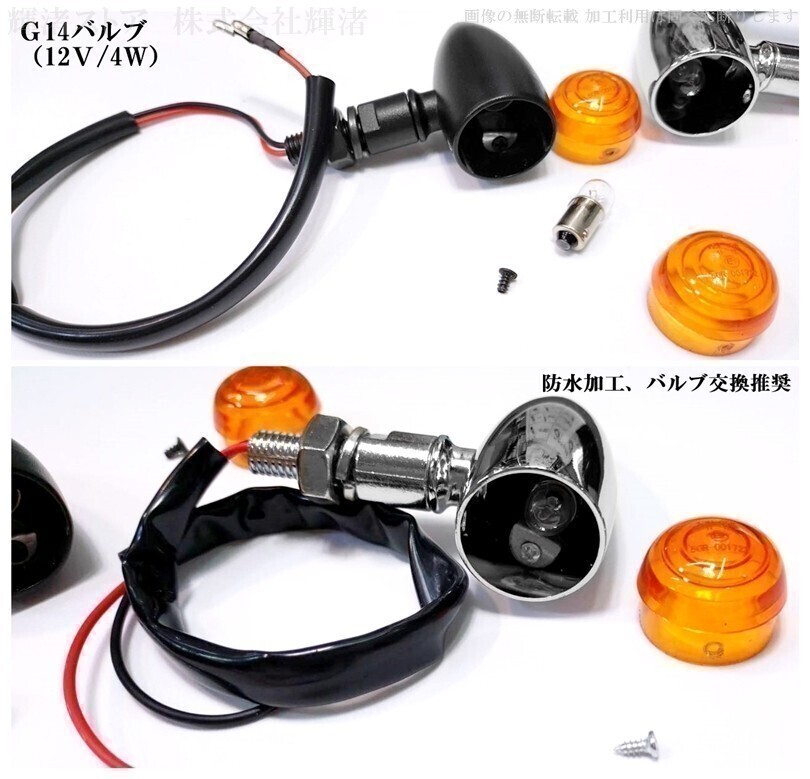 | 商品説明 | ご覧頂き誠に有難う御座います。 【送料】 全国一律¥600 奈良県から日本郵便レターパックプラスで発送となります。 (追跡番号有り) 【カラー】 黒 【内容】 本体:4個(1台分) 【商品】 +と-の2線式です。 ネジ径はM10です。ネジ部分 長さ:25mm バルブは、ハロゲンバルブです。 汎用タイプになりますので適合車種については サイズ等でご判断お願い致します。 商品についての詳細仕様書・説明書は付属しておりません。 お取付 車検はバイクショップにご依頼 ご相談を推奨します。 ご自身でお取付する際は自己責任で行ってください。 車検整備につきましては、 汎用品のためお客様にご判断頂くか ショップにご相談をお願いしております。 汎用部品 12V ホンダ ヤマハ スズキ カワサキ ハーレー |