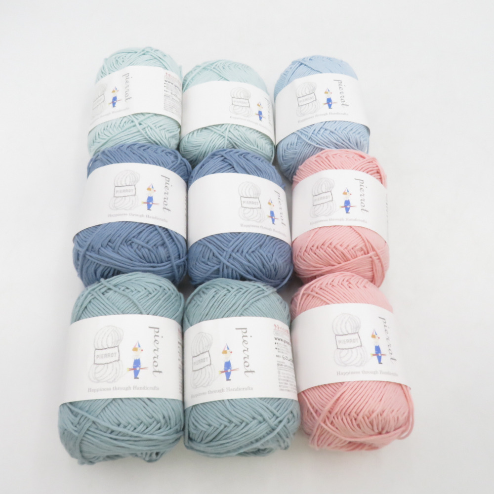 | 毛糸 毛糸ピエロ コットンニィート(S)9玉 アソート 1玉40g 約95m 綿100% 並太 日本製 春夏毛糸 未使用品 |