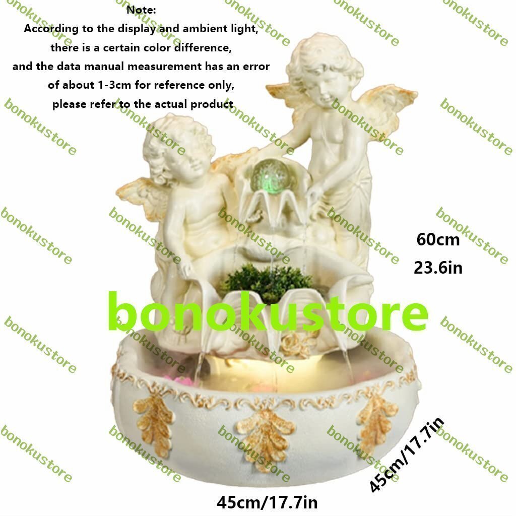 いつでもストレス解消:ハードな一日の後にリラックスしたり、眠りについたり、瞑想したり、ヨガを練習したりするために使用します。 赤ちゃんの保育園に飾って、常夜灯のような音と柔らかな輝きを楽しんでください。 天使の卓上の噴水、噴水飾りの巧妙な組み合わせ。マッチン使いやすさ:静かな内蔵の水中ポンプが自動的に水を循環させ、藻の蓄積を防ぎます。 コード付き電源装置をコンセントに差し込んで電源を入れます。 オフスイッチを切り替えてオフにします。製品名:卓上噴水材質:樹脂装飾タイプ:デスクトップデコレーションサイズ:45 * 45 * 60 cm / 17.7 * 17.7 * 23.6インチ使用状況シナリオ:屋内、屋外、オフィス、リビングルームなど注:ディスプレイと周囲の光によると、ある色の差があり、データ手動測定は参照では約1~3cmの誤差を持ちます。実際の製品を参照してください製品の絵の中の緑の植物や生き物は、製品の範囲ではなく撮影用品です。装飾的な卓上噴水:どの部屋にも落ち着きのある禅の装飾的な雰囲気をもたらします。 静かな春の光景と音を再現する、穏やかで心地よい水の流れを作り出します。