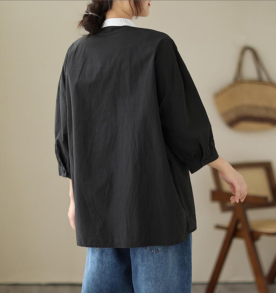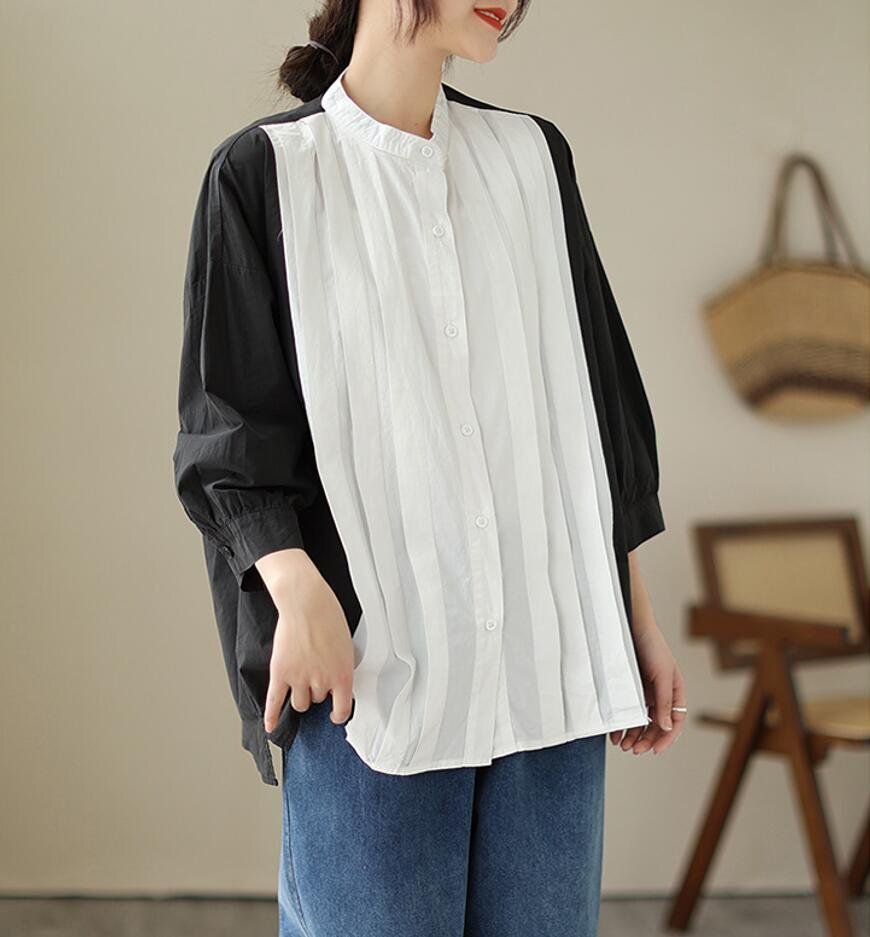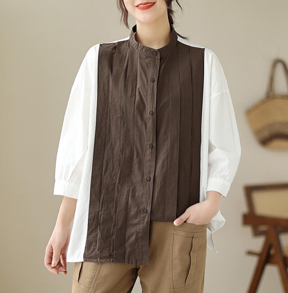 春夏 チュニック レディース コットン シャツブラウス 配色 トップス ゆったり 着心地 可愛い★白 /Mサイズ [浏览原始页面]