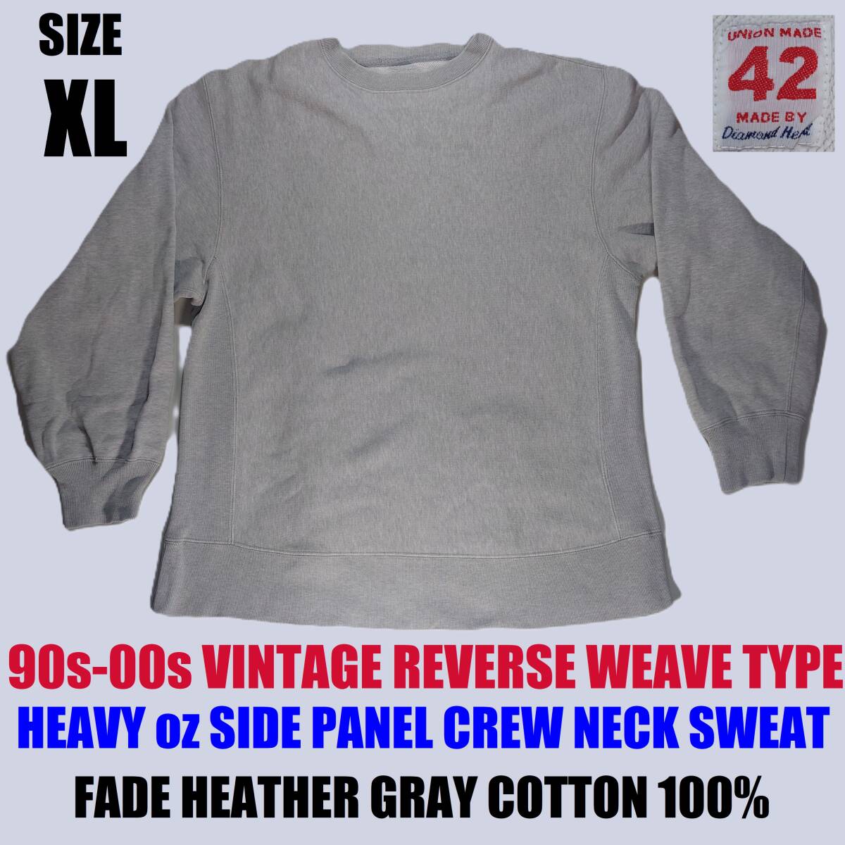 1999年~2000年頃に購入し数年間愛用していた、「Diamond Head Heavy oz Reverse Weave Type (Side Panel) Crew Neck Sweat」です。