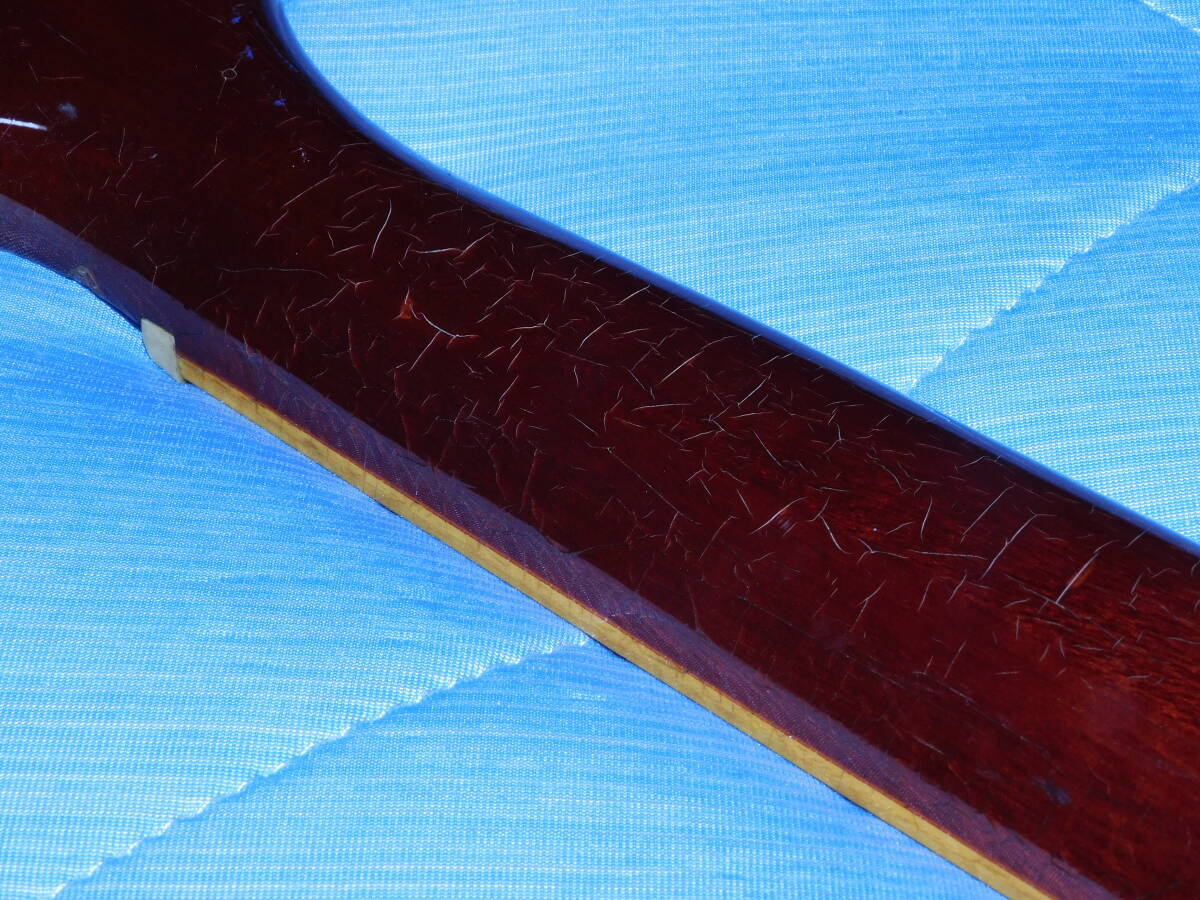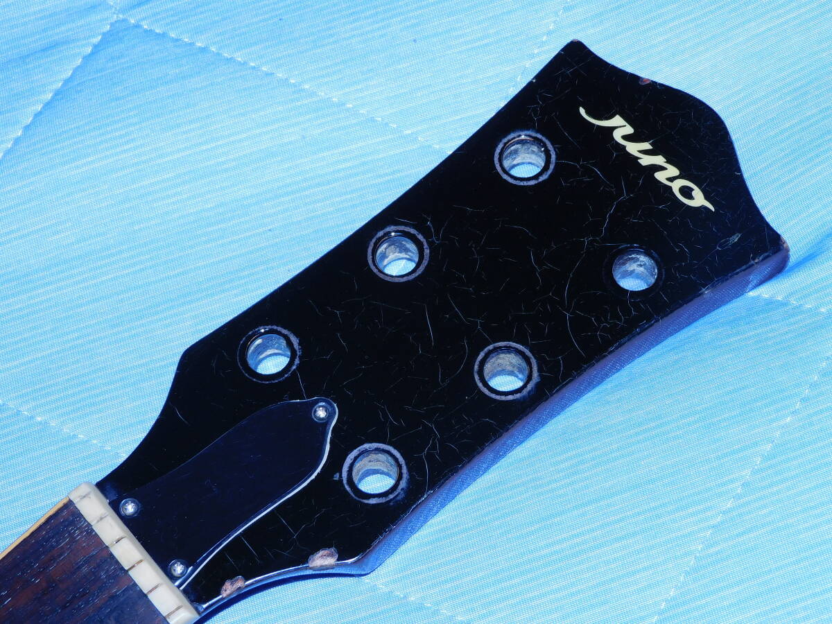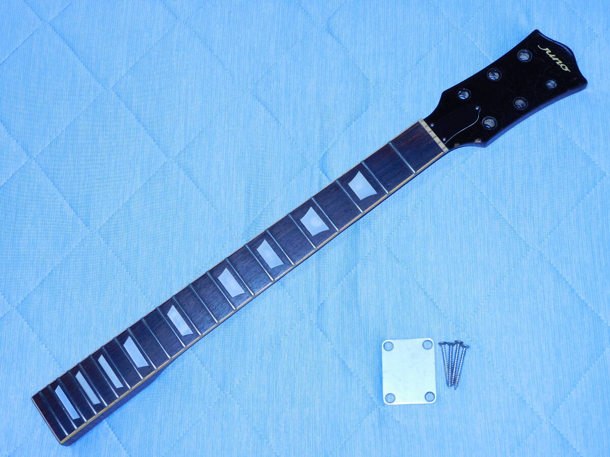 「JUNO/ジュノ」のレスポールスタンダード用「22フレットネック/314ミリスケール」です。画像のように、中古なので全体にウエザーチェックがありエイジド風になっています。です。経年使用による小キズや塗装の経年劣化があります。フレットの減りは僅かです。ネックはほぼストレートに調整出来ました。トラスロッドは点検済みです。付属品はオリジナルのネックジョイントプレートと木ネジ4本です。画像にあるものが全てです。状態は画像でご確認下さい。当方にて出来るだけのクリーニングを致しましたが必要に応じて落札者様でメンテナンスしてお使い下さい。画像やコメントをご参考に入札お願い致します。それではオークションが終わりますまでよろしくお願い致します。あくまでも中古品の為落札後のクレームやキャンセルはご遠慮下さい。中古品なのでキズや経年劣化等些細な事や、完璧な商品をお考えの方は入札をお控え下さい。ご理解の上ご入札下さい。オークション開催中の入札の取り消しもお受け出来ません。梱包送料は九州から東北までは1500円、沖縄は2200円、北海道は2300円です。