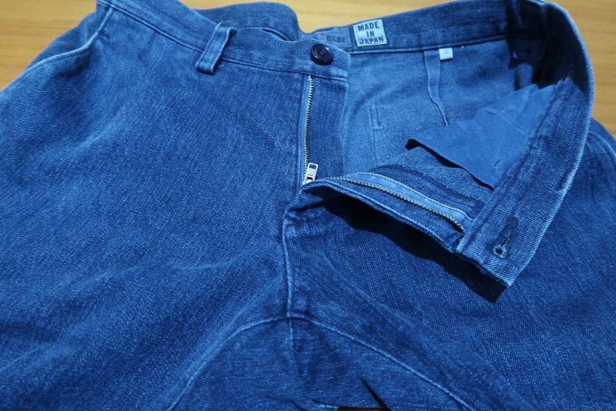 BLUEBLUE ブルーブルー 立体裁断パンツ Sサイズです、ウエスト約40.5×2cm 股上約21.5cm 股下約69cm 裾幅約14.5cmです、多少使用感があります、発送はレターパックプラスのみになります。