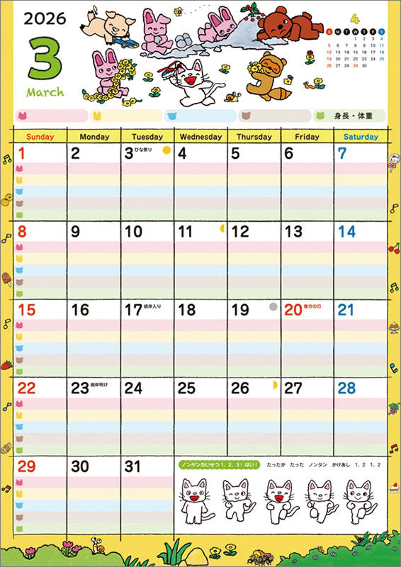 | 2026年 カレンダー 【新品未開封】 ■タイトル/ノンタン あそべるファミリーカレンダー ■品番/CL26-034 ■JAN/4541545066039 ■サイズ・仕様/45×30cm・13枚 / ヒラ |