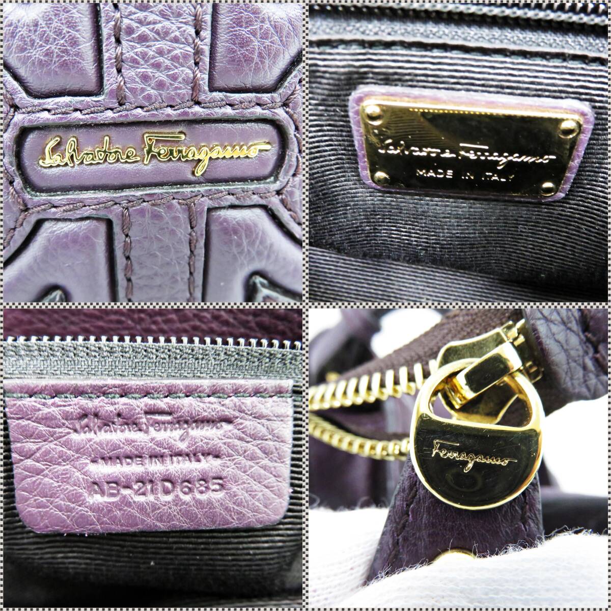 サルヴァトーレ フェラガモ AB-21 D685 ハンドバッグ ショルダーバッグ ダブルガンチーニ レザー パープル Salvatore Ferragamo |