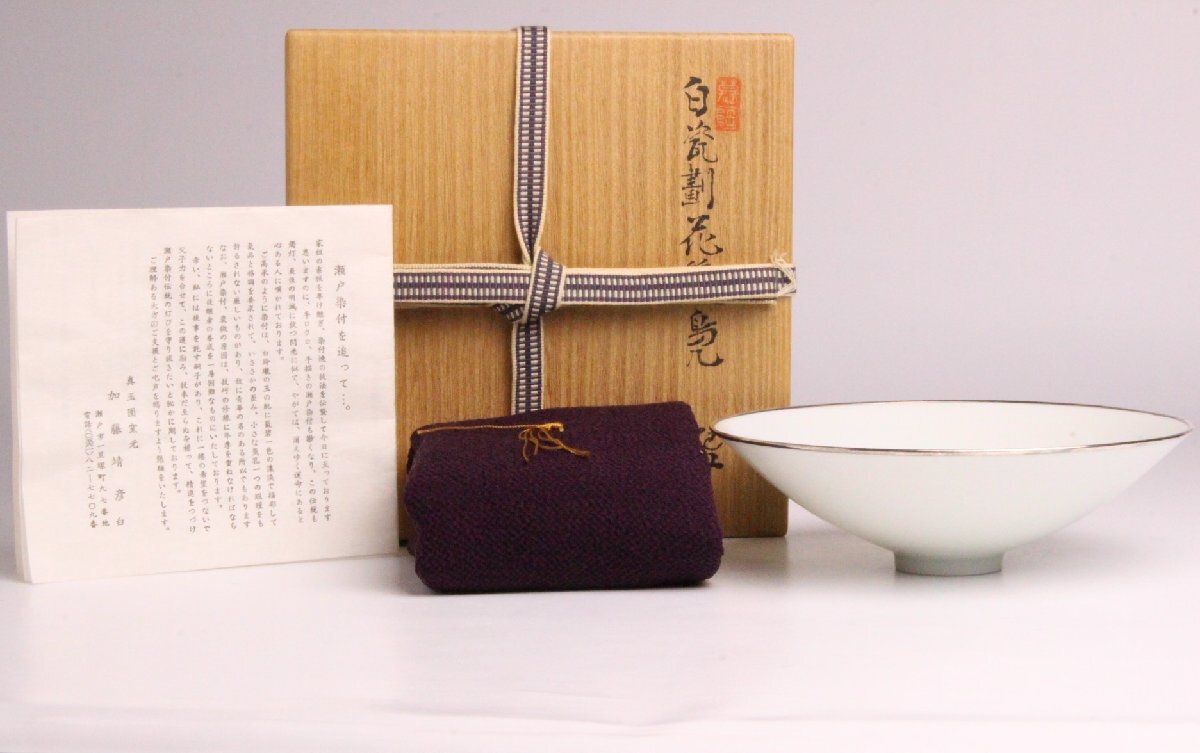 白瓷劃花雙鳧 銀覆輪 加藤靖彦 作(特別作)「共箱・専用袱紗・栞」| 出价者 | 信用 | 价格 | 时间 |