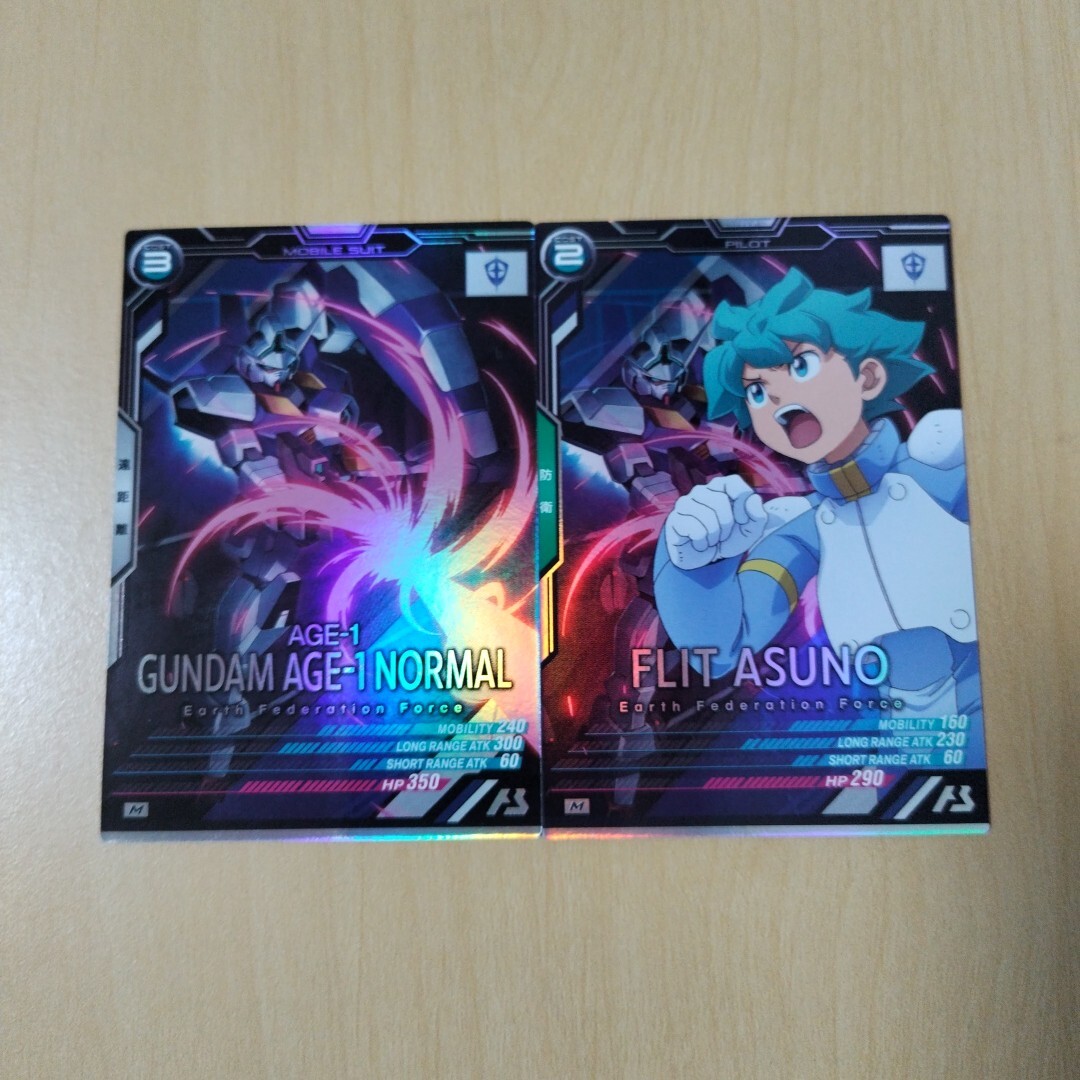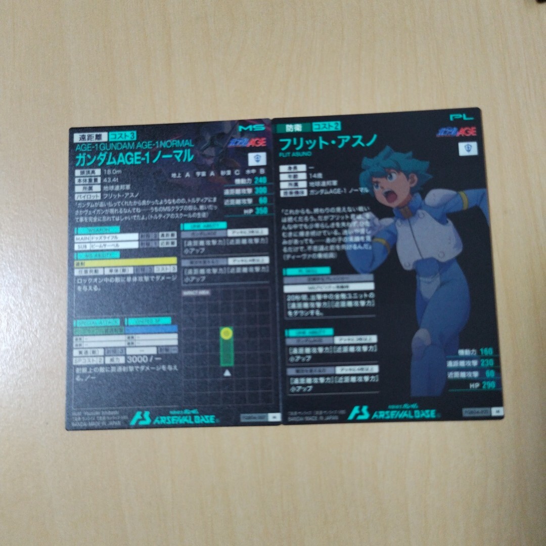 ガンダムアーセナルベース、Mレア、ガンダムAGE-1ノーマル& フリット・アスノの出品となります。未使用品です。排出後、スリーブに入れて保管していますが初期キズなど気になさる方はご遠慮ください。配送料金は梱包代込みで全国一律、120円とさせていただきます。他の出品との同梱は対応いたします。ノークレム、ノーリターンにてお願いいたします。