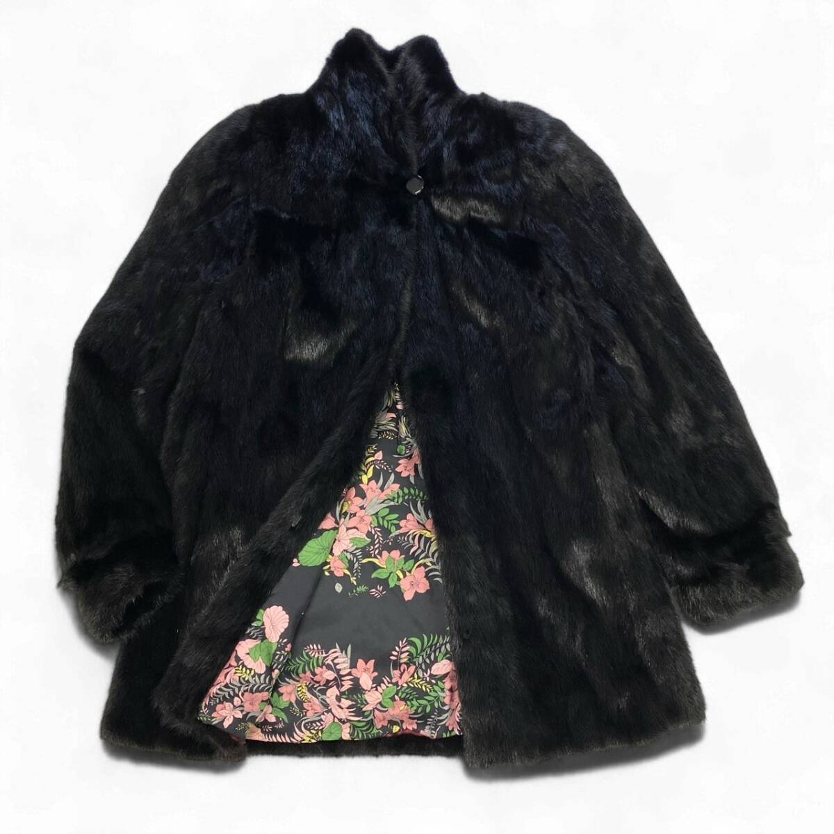 | スタッフ商品コメント | 深みのあるブラックミンクが美しい光沢を放つ、高級感溢れるセミロングファーコートです。内側には華やかな花柄シルクの裏地があしらわれ、着脱時にもエレガントさが際立つデザイン。滑らかで密度の高いミンクファーは保温性が高く、真冬のお出かけや特別なシーンでも暖かく過ごせます。コンパクトな肩周りと程よくゆとりのある身幅で、ニットの上からも快適に着られる万能なサイズ感。大人の装いに格上げしてくれる、長く愛用できる上質な一着です。 |
