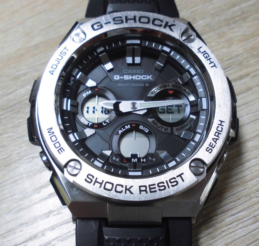 | タフネスを追求し進化を続けるG-SHOCK、「レイヤーガード構造」を採用したG-STEEL GST-W110-1AJF!!! ベゼル部に異なる素材を用いて、二層のレイヤー構造にすることにより耐衝撃構造を強化。ベゼル上部にメタル(ステンレス)を使用した場合は下部に緩衝体となる樹脂、また上部に樹脂を使用した場合は下部にファインレジンを組み合わせることで、上部からの衝撃を緩衝し、これによりデザインの幅を広げました。 世界6局に対応するマルチバンド6やタフソーラーを搭載。ワンプッシュで時分針を現在の位置から、一時的に退避させ液晶表示が読み取れる針退避機能や、文字板を明るく照らすダブルLEDライトも搭載しています。 中古です。写真の時計だけの出品です。1枚目の写真を見てもらうとわかると思いますが、GET表示されていますので電波受信OKです。写真撮影時は、ライトが点灯し動作中です。中古ですのでキズはありますが良い状態です。 |