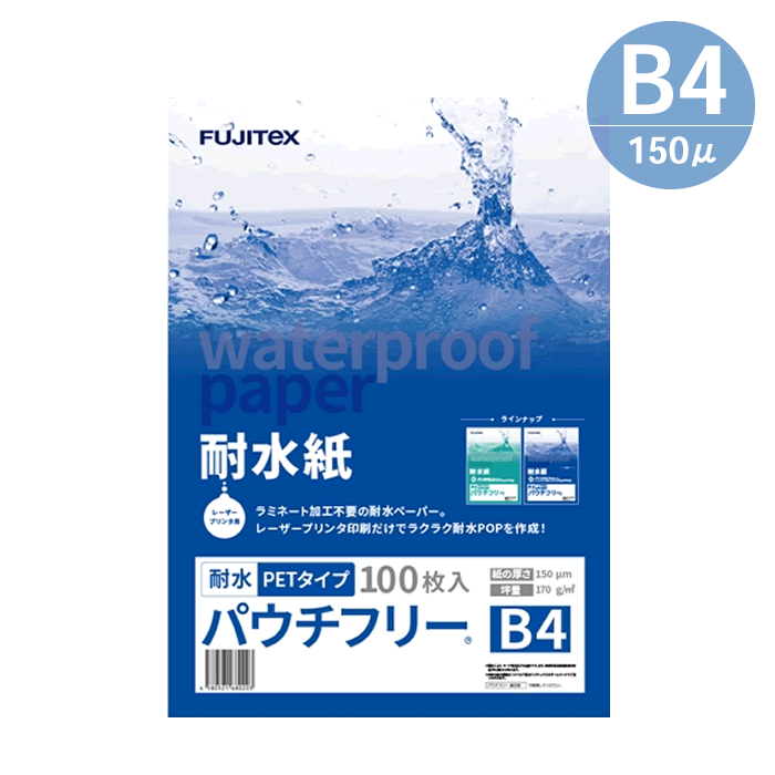 ラミネート不要の耐水紙で業務効率化アップ!! レーザープリンターで印刷するだけで そのまま店舗のメニュー・POP・プライスカード・貼り紙等に活用できます。 |