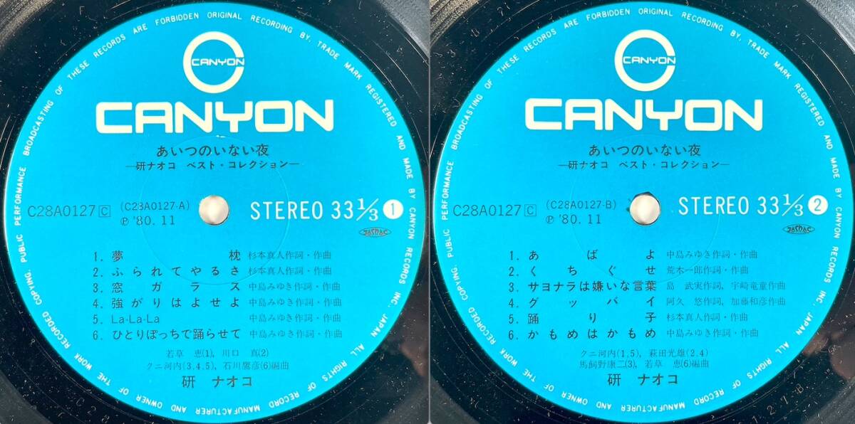 LP盤 研ナオコ「あいつのいない夜 - 研ナオコ ベスト・コレクション -」(CANYON/C28A0127/1980年/レコード/レトロ/JUNK)