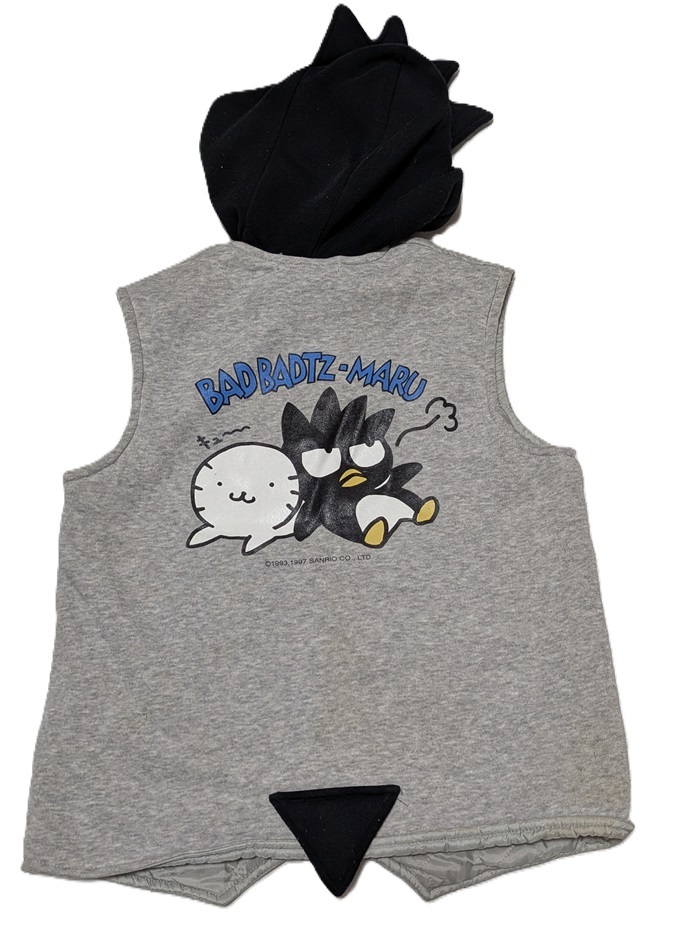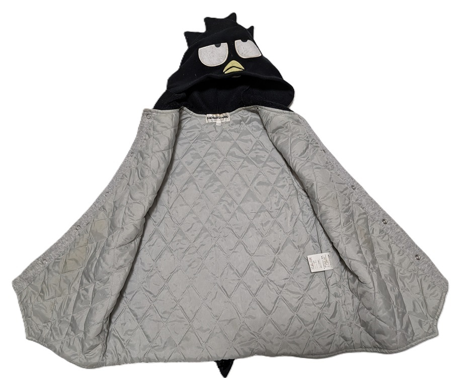 | フード取り外しできません。 サイズは120。 身長115~125。 着丈約48cm。 肩幅約33cm・ 胸囲平置き半面約44cm。 素材は黒色部分は ポリエステル100%。 グレー部分は ポリエステル70%・ 綿30%。 中綿ポリエステル100%。 全体的によごれ・ 素材落ちあります。 |