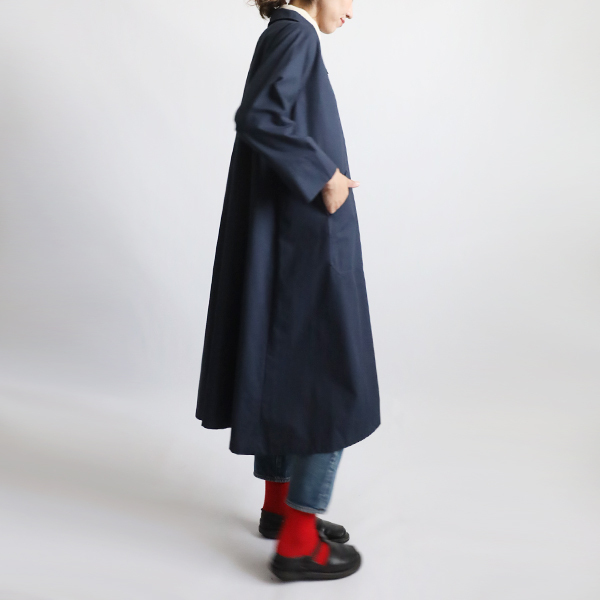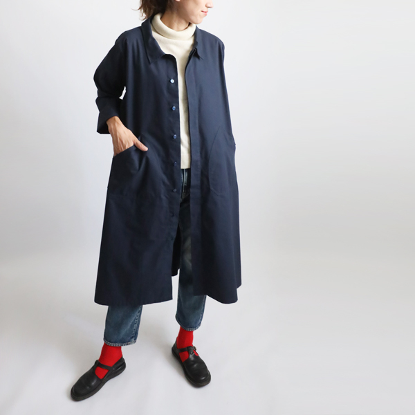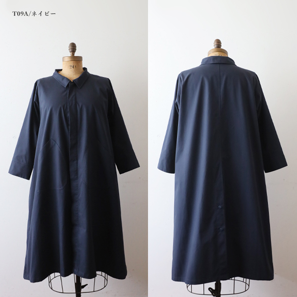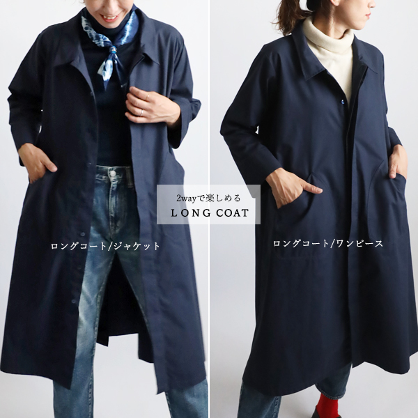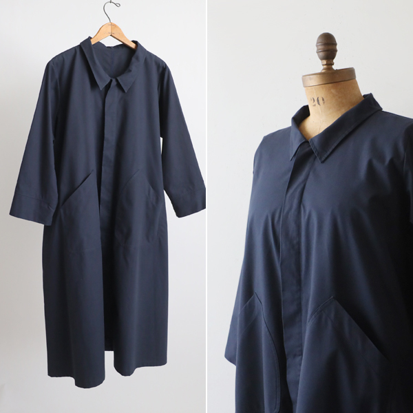 「 大きな丸ポケット付き Aライン ロング コート ワンピース 」