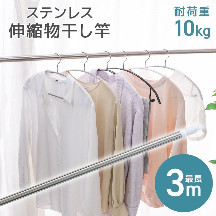 片側が伸縮するので、短く使う時でもバランスの取れた形になります。 錆びにくいステンレス被覆鋼管を使用しています。 【商品仕様】 商品サイズ:(約)長さ220~300cm×直径3cm 耐荷重:(約)10kg 材質:ステンレス、ABS樹脂 他 【注意事項】 ・商品は、モニターによって色合いが異なって見える場合があります。 ・仕様・デザインは改良のため予告なく変更することがあります。 |