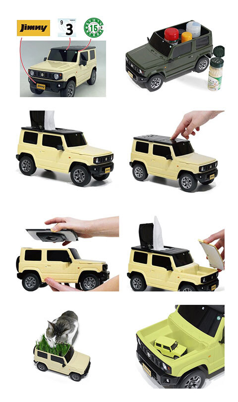 今でも長期の納車待ちが続くスズキの人気車「ジムニー」を1/12スケールで完全再現したウェットティッシュ用ケースです。