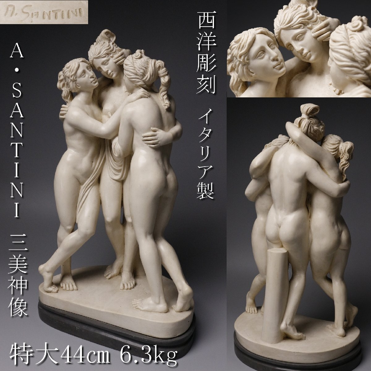 [.Y]25.11 25111704* * * 商品詳細 * * * ここでしか出逢うことのできない唯一の美をご紹介させて頂きます。 白い肌地が美しいA.SANTINIによる三美神像のご紹介です。 ギリシア神話とローマ神話にに登場する三美神で、 ギリシア神話では魅力、美貌、創造力を、 ソーマ神話では、藍、慎み、美を司どっています。 三人の女神たちが互いに肩を抱き向きあっている様が優雅に造り上げられ、 ふっくらとした女性の美しい肢体を見事に表現しています。 艶やかで張りのある肌、なめらかな肌は思わず触りたくなってしまう様な 隅々まで神経の行き届いた仕上がりが実に見事です。 この機会にお手元にてご堪能下さい。 ■サイズ/横24cm×高44cm×奥行16㎝ 重量:6.385kg ■状態/スレ、傷、欠け、汚れがございます。 ※写真にてご確認、ご了承の上ご入札下さい。 ![]() * * * 支払詳細 * * * !かんたん決済 * * * 発送詳細 * * * 入金確認後3営業日以内に発送致します。 ※直接引き取りも可能です。 60~160サイズにつきましては 佐川急便、ゆうパックのどちらかで発送いたします。 ゆうパック発送の場合、弊社の発送日から追跡サービスに問合せ番号が反映されるまで 約1日ほどお時間がかかりますのでご了承下さい。 * * * 注意事項 * * * 運送中の破損があった場合は速やかに当社までご連絡下さい。 保険を利用するのに受取連絡後に運送会社による現場での破損状況確認が必要となります。 勝手に返送されますと保険の適用外となりますのでご注意ください。 * * * * * * お問い合わせ:082-236-8669 |