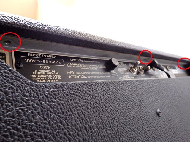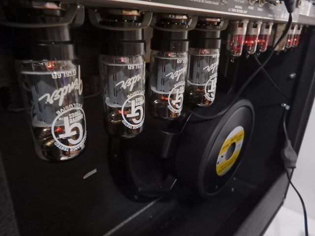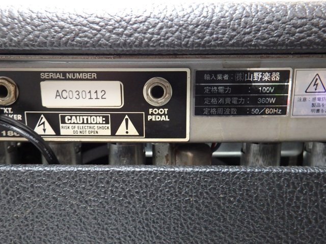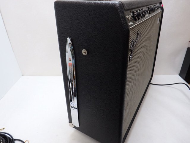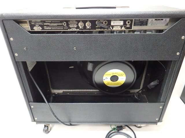 Custom15の筐体+スピーカーに別で製造された65Twin Reverbが移植されています。 https://serialnumberlookup.fender.com/lookup/ こちらでシリアルナンバー(AC030112)を検索すると65Twin Custom15ではなく65Twin Reverb 2000年製となってます。 65Twin Custom15は2004年頃~生産、画像10枚目のシャーシ取付ネジ3本欠品等から元は別々で製造されていた製品と判断しました。 65Twin Custom15は、定番モデルである65Twin Reverbのリイシュー(復刻版)をベースに、通常の2x12インチスピーカーではなく、1基の15インチスピーカー(Eminence製)を搭載するために再設計されたモデルになります。製造時期の違いにより使用パーツの変更等はあるかもしれませんがスピーカー以外の基本スペックは変わりません。 過去に整備されたものと思われます。真空管はすべてFenderロゴ入りGroove Tubesに、リバーブユニットはaccoutronics 64063(2011年製)に交換されています。 入出力・動作確認済みです。金属パーツにくすみや若干の小傷等はありますが全体的には気になるダメージ等なく良好な状態です。フットスイッチが付属します。 出力 : 85W チャンネル : 2 スピーカー : Fender Genuine Custom 15 Driver(4Ω) by Eminence 真空管 : 4 x 6L6, 4 x 12AX7A, 2 x 12AT7 重量:34kg 別途:その他、いろいろ出品しています |