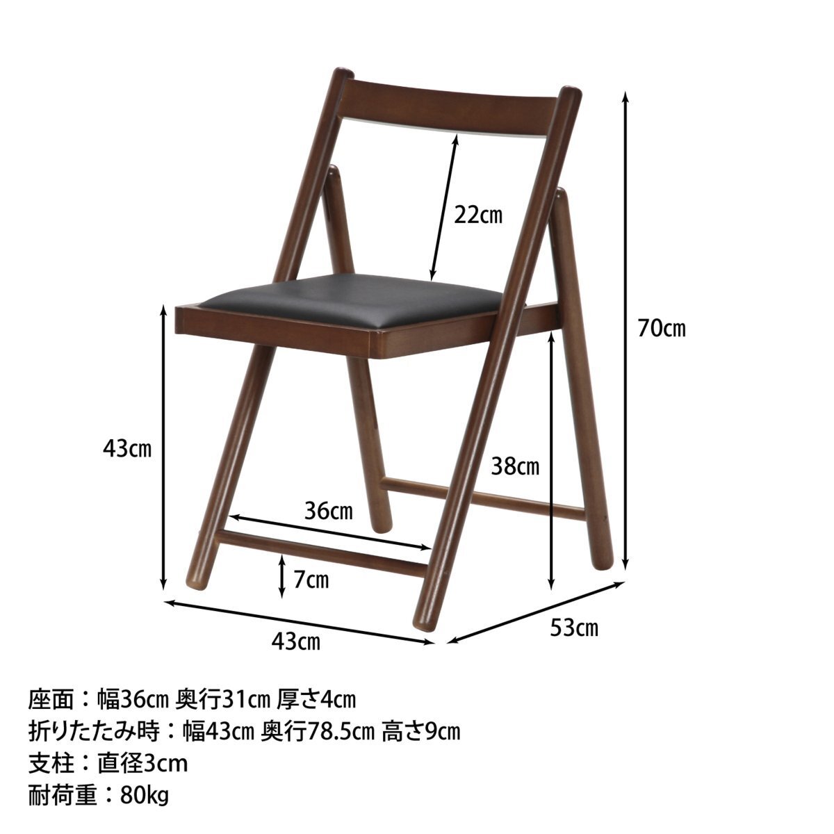 | サイズ | 〔全体〕幅43×奥行53×高さ70cm〔座面高さ〕43cm 折畳み時:43×78.5×9cm |