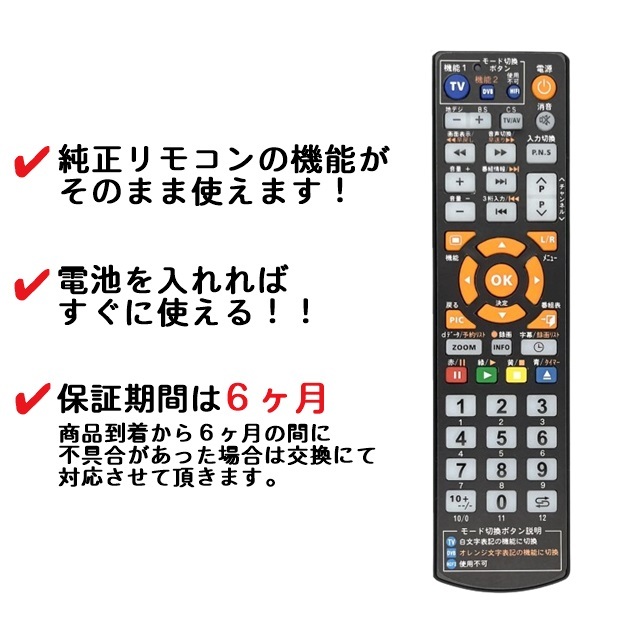 | 【商品名】 ジョワイユ JOY55TVPVR 代替リモコン 【対応機種】 JOY55TVPVR用 比較画像の右側の純正リモコンが付属する機種に使用出来ます。 上記機種以外については、質問欄よりメーカーと型番をご連絡頂ければ、対応品のご案内をしております。 【商品について】 左側の代替リモコンが出品物になります。右側のリモコンは見本画像です。 タイトル機種のリモコン信号を入力した、設定不要で使える純正品と同等の代替リモコンです。 乾電池は付属しません。別途ご用意下さい。(単4乾電池×2本) 【商品サイズ】 縦18.5cm×横5cm×高さ2.35cm 【発送について】送料無料 迅速発送を心掛けております。土日祝日はお時間を頂く場合ございます。 ポスト投函配達となり、日時指定は出来ません。 | ||