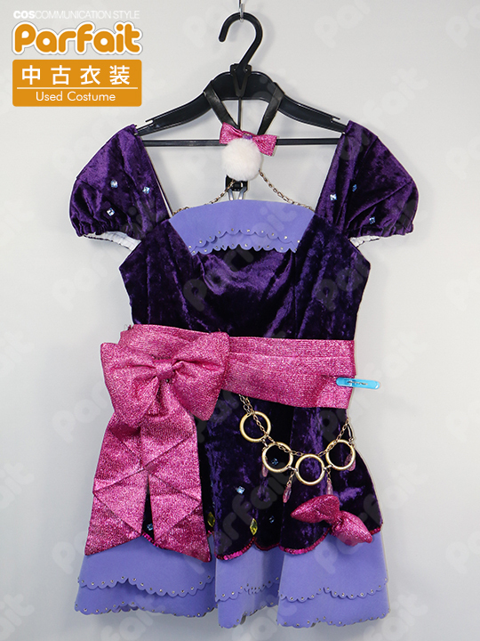 【中古コスプレ衣装】コスプレ衣装 アイカツ!/白樺リサ(レディラメリボンコーデ)(Sサイズ)【ウィッグ付き】 【セット内容】 ワンピース、腰ベルト、腰リボン、スカート裾リボン、手袋、手首飾り、二の腕飾り、脚リボン、足首飾り、ブーツカバー、イヤリング、髪リボン、ウィッグ 【生地の種類】 ポリエステル 【コメント】 ウィッグとブーツカバーが付属した、自作風のアイドル衣装セットです。バスト約81cmウエスト約64cmです。主にベロア生地で作られており、明るい紫色はスエード系の生地が使われています。ワンピース腰飾りの金属パーツにやや使用感があります。ブーツカバーの底部に金合皮が使われており、ファスナー周りに一部縫製ほどけがありますが劣化は見られません。チョーカー部分の黒合皮にいたみなどの使用感があります。(2025/10時点)ウィッグはカット加工があり、前髪に整髪料加工や毛先にカール加工があります。 |