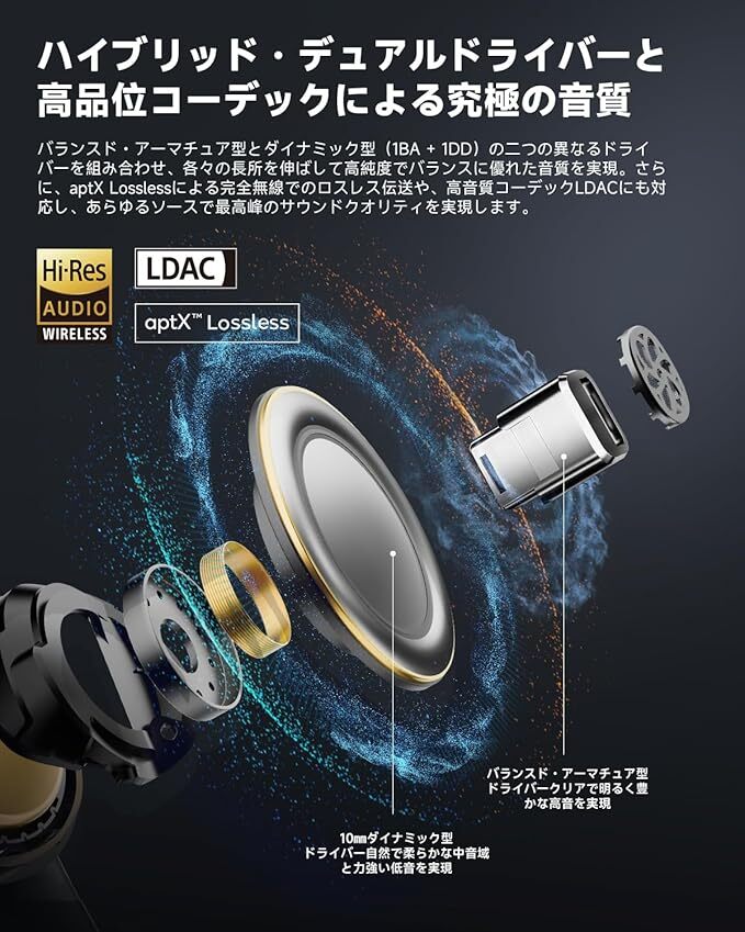 | ノイズコントロール | アクティブノイズキャンセル, アダプティブノイズキャンセリング, ハイブリッドノイズキャンセリング |