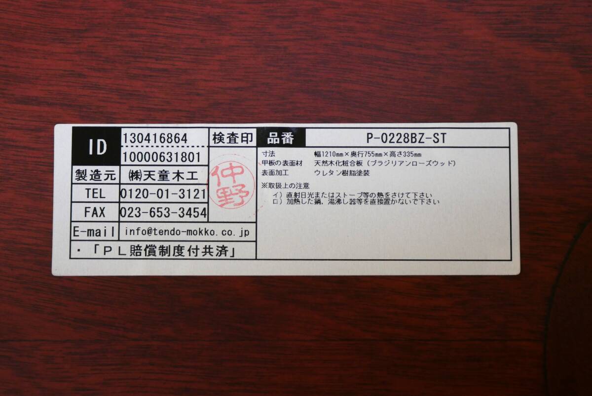 yt2106ジ 希少 天童木工 座卓 4尺x2尺5寸 ブラジリアンローズウッド P-0228BZ-ST 幅121cm ローテーブル 乾三郎/デザイナーズ家具 071119-01 | |||